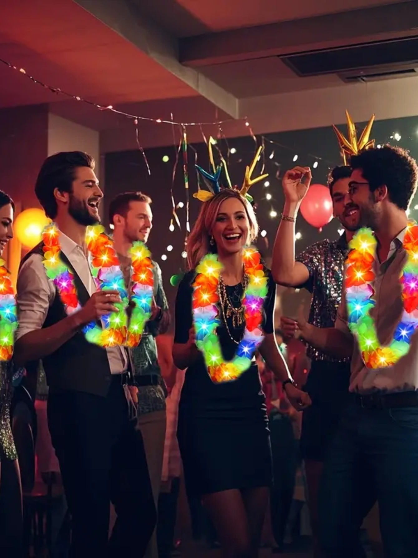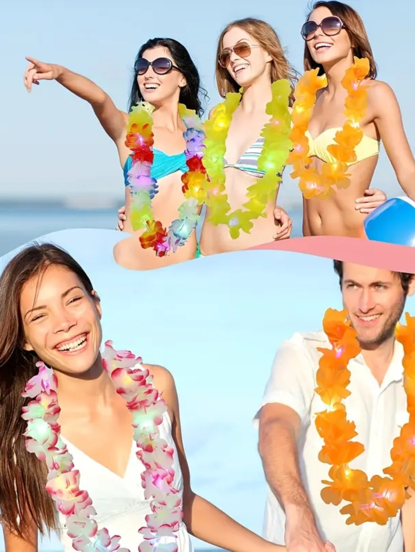 Cross-Border Hot Selling Led with Lights Hawaiian Flower and Grass Skirt Dance Garland Collar Decoration Performance Party Skirt and Grass Dance Performance