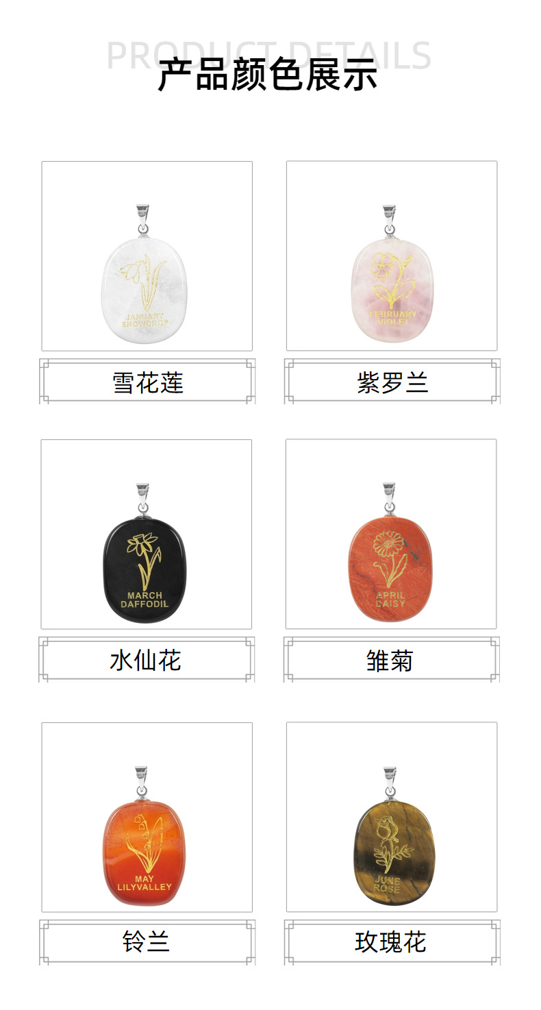 Birthday Flower Pendant in English: Birthday flower, birthday stone