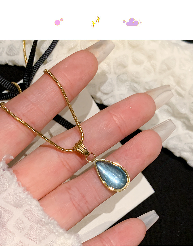Color: Blue water drops [gold] necklace titanium steel