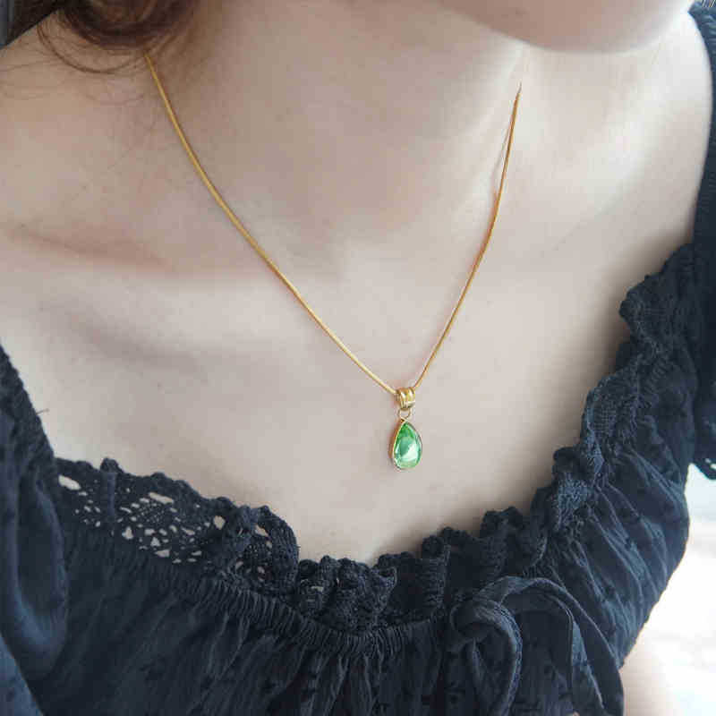 Green water drops [gold] necklace titanium steel