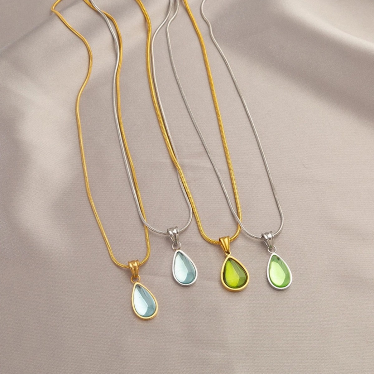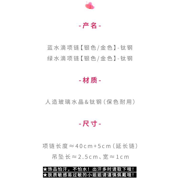 Color: Green water drops [silver] necklace titanium steel