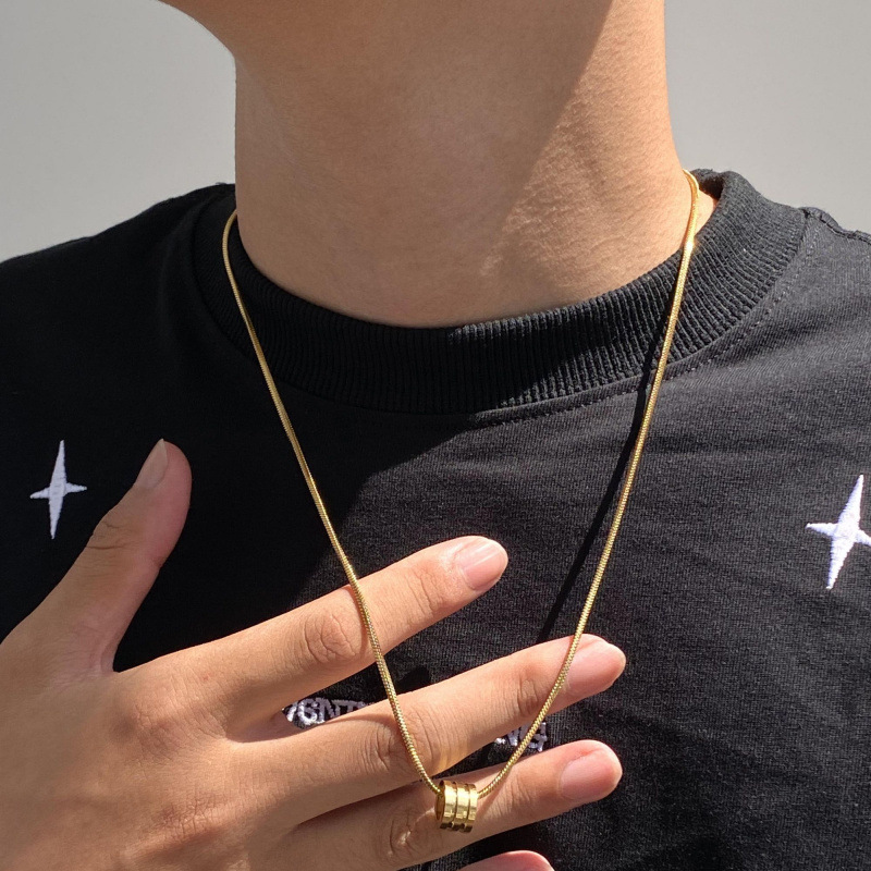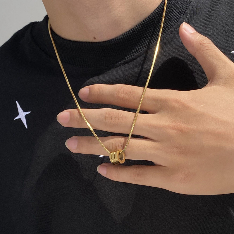 Gold Necklace Simple Fashion Brand Fashion All-match Couple Pendant Distinctive Collarbone Sweater Short Chain for Men