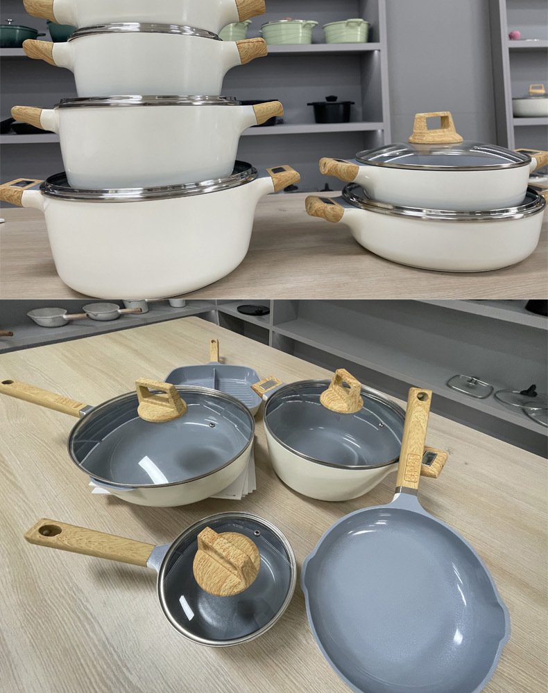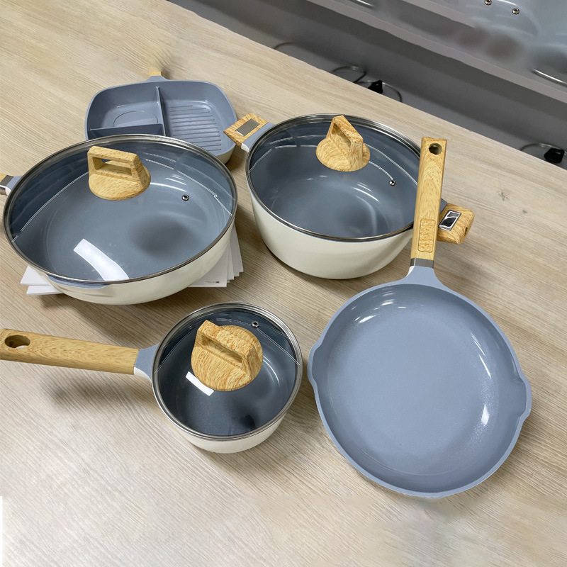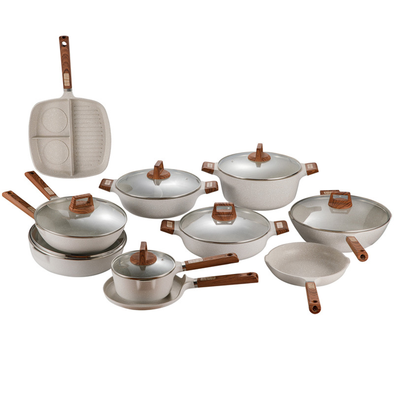 Foreign Trade Hot Style Customized Pot Set Die-Cast Aluminum Non-Stick Pot Set Soup Pot Diamond Pot Induction Cooker Gas Bottom