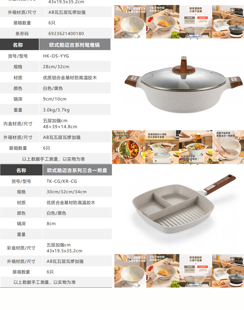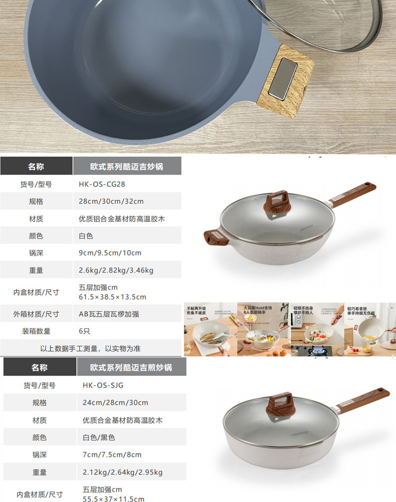 Package configuration: Soup pot, milk pot, frying pan, wok