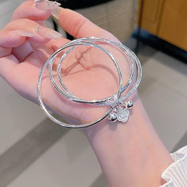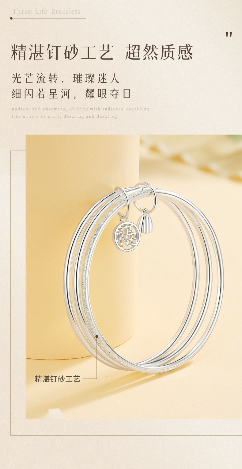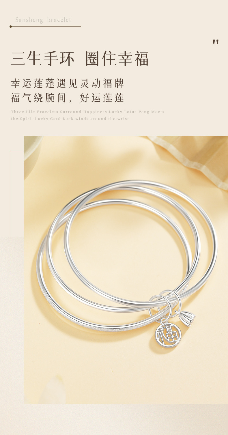 New Sansheng III Bracelet Female Fu Character Lotus Plated Sterling Silver Ping An Bell Two Shihuan Butterfly Love Flower Three Circle Bracelet