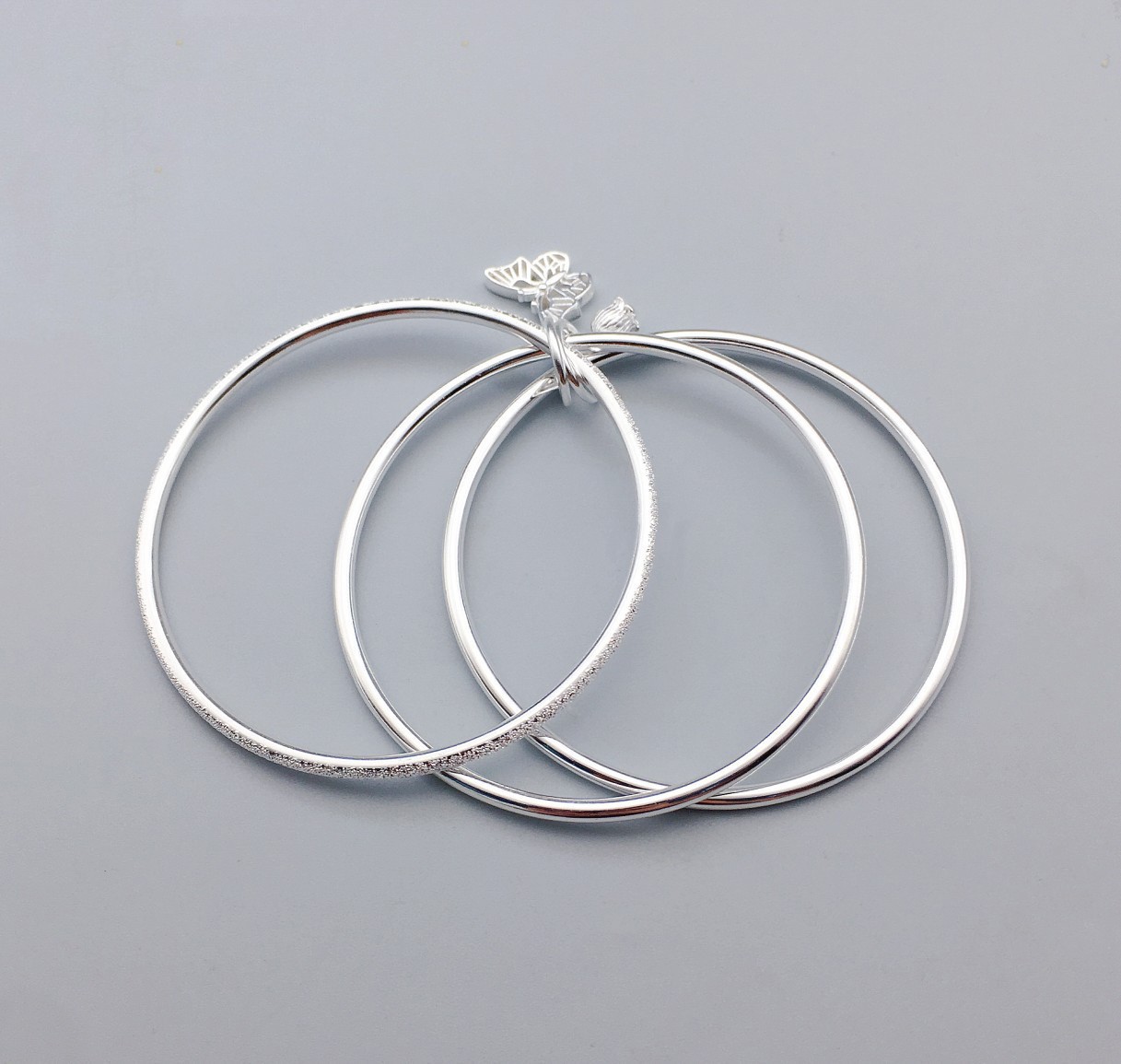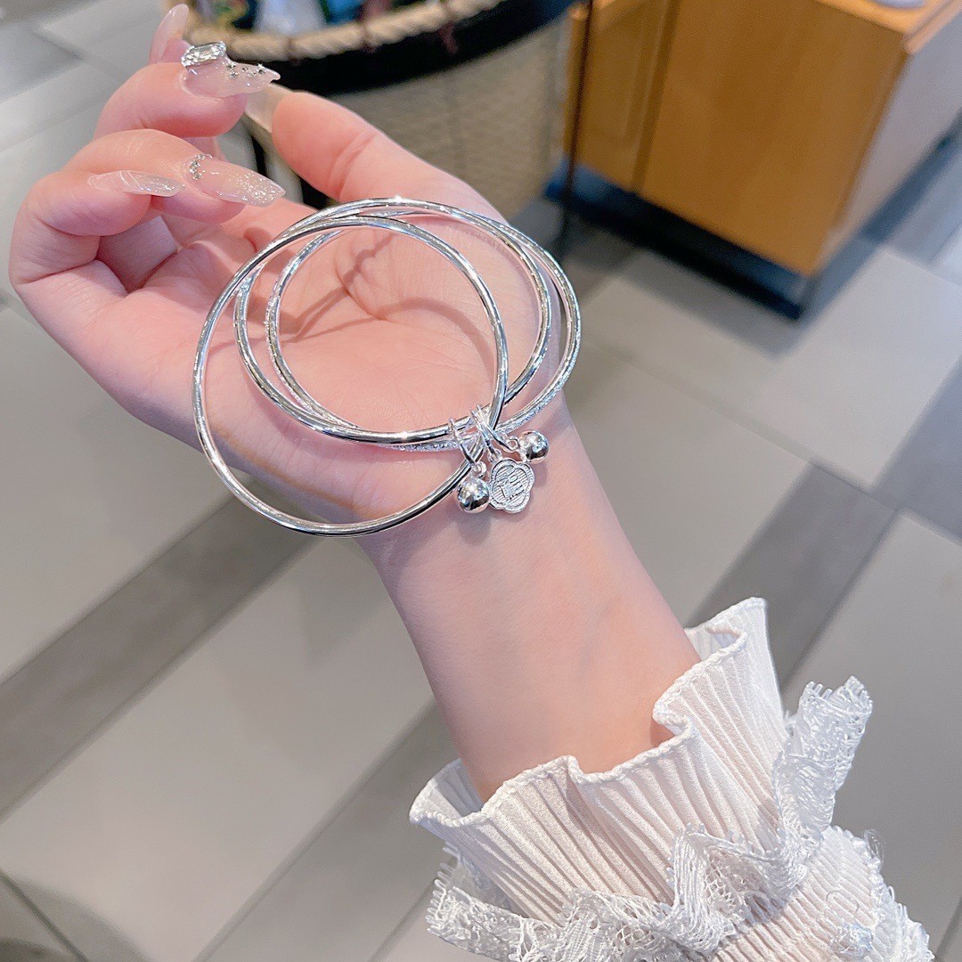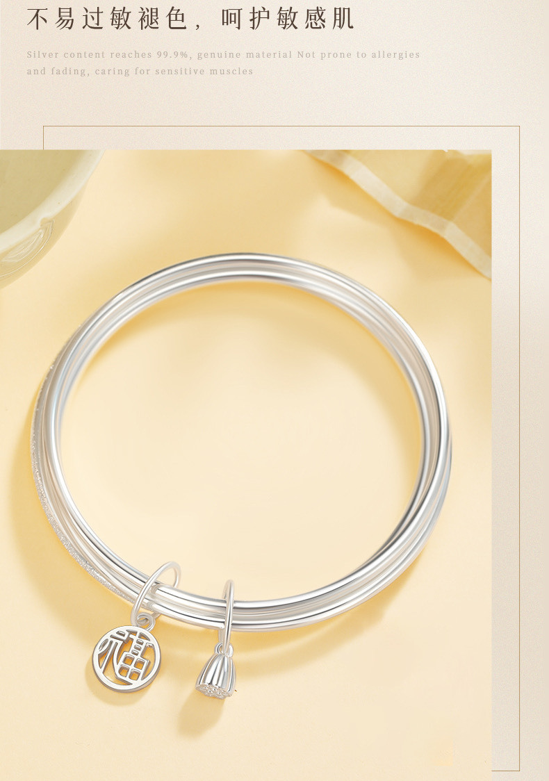 New Sansheng III Bracelet Female Fu Character Lotus Plated Sterling Silver Ping An Bell Two Shihuan Butterfly Love Flower Three Circle Bracelet