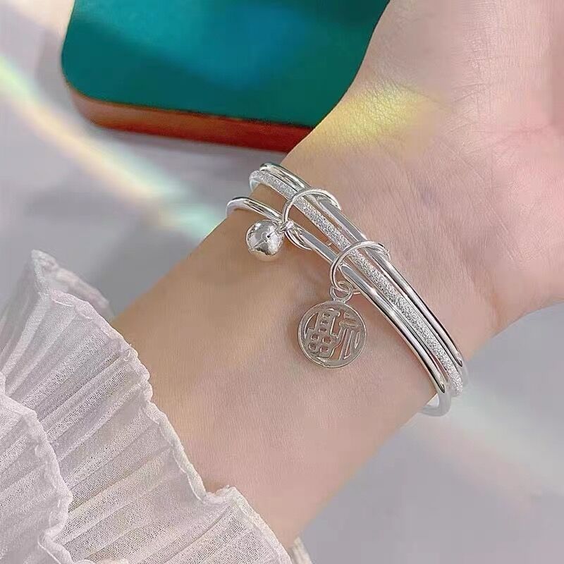 Color: Three sheng sanshi single bell bracelet with blessing characters (thick silver plated)