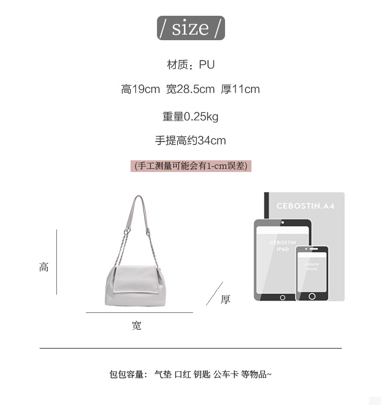 Niche Underarm Bag Women's 2024 New Trendy Fashionable Chain Bag Textile All-match Large Capacity Shoulder Crossbody Bag