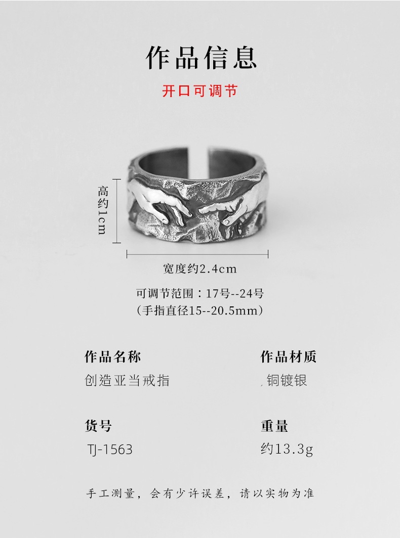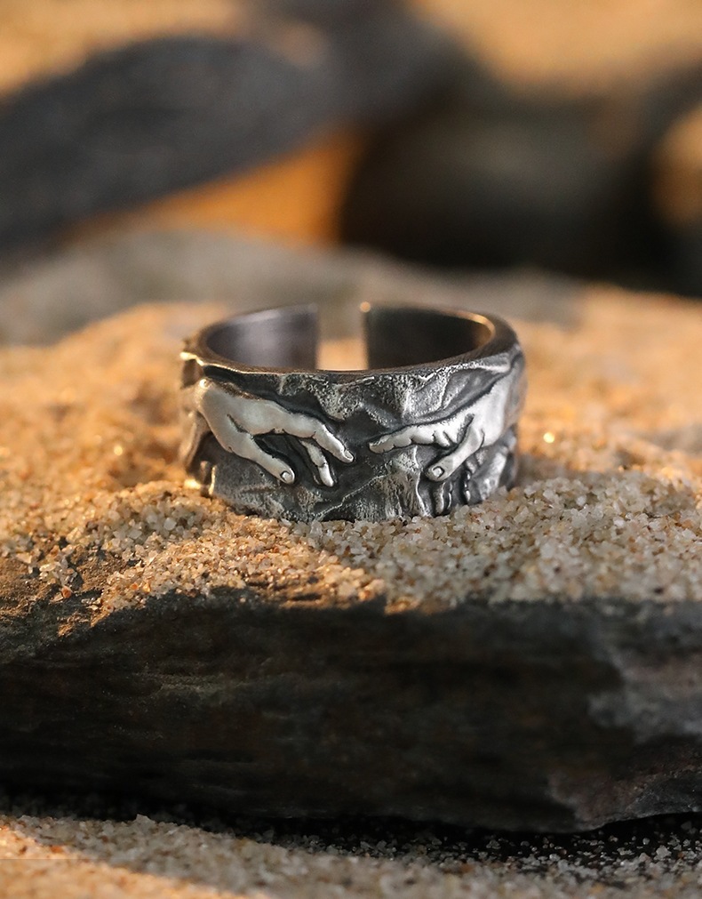 European and American personality retro painting art index finger men's ring "hand of god" boys ring in stock wholesale
