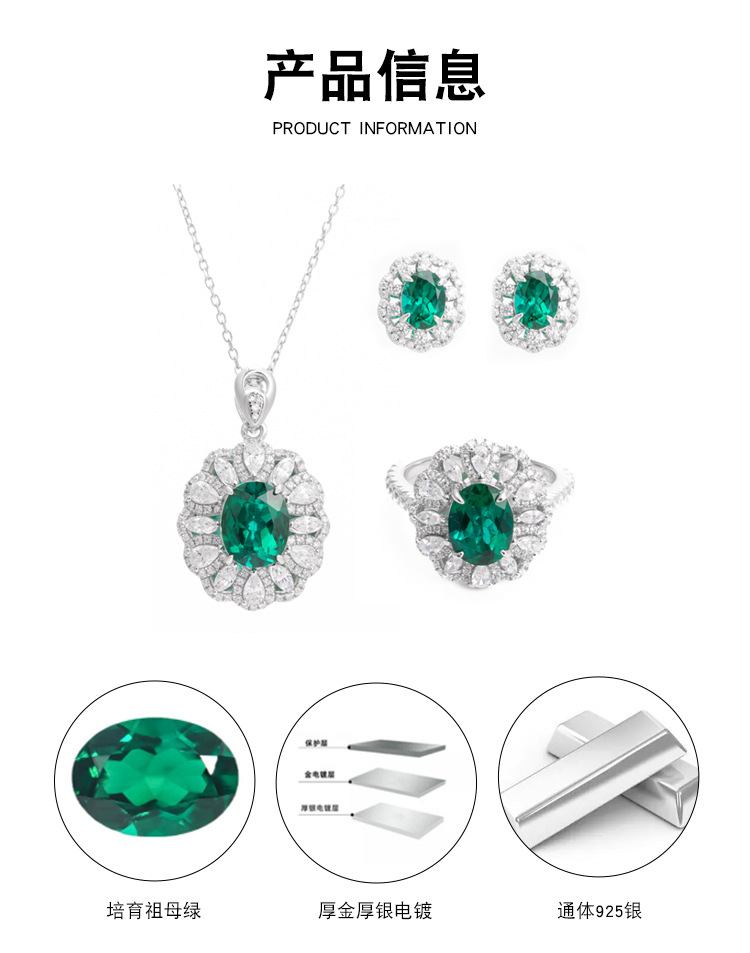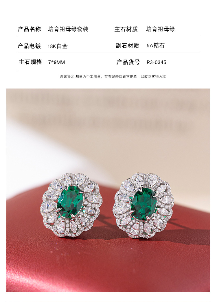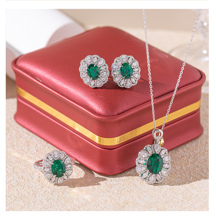 Little Red Riding Book Best Selling 2 karat Cultivated Emerald suit Oval Ring Earring Pendant Gift for Mother