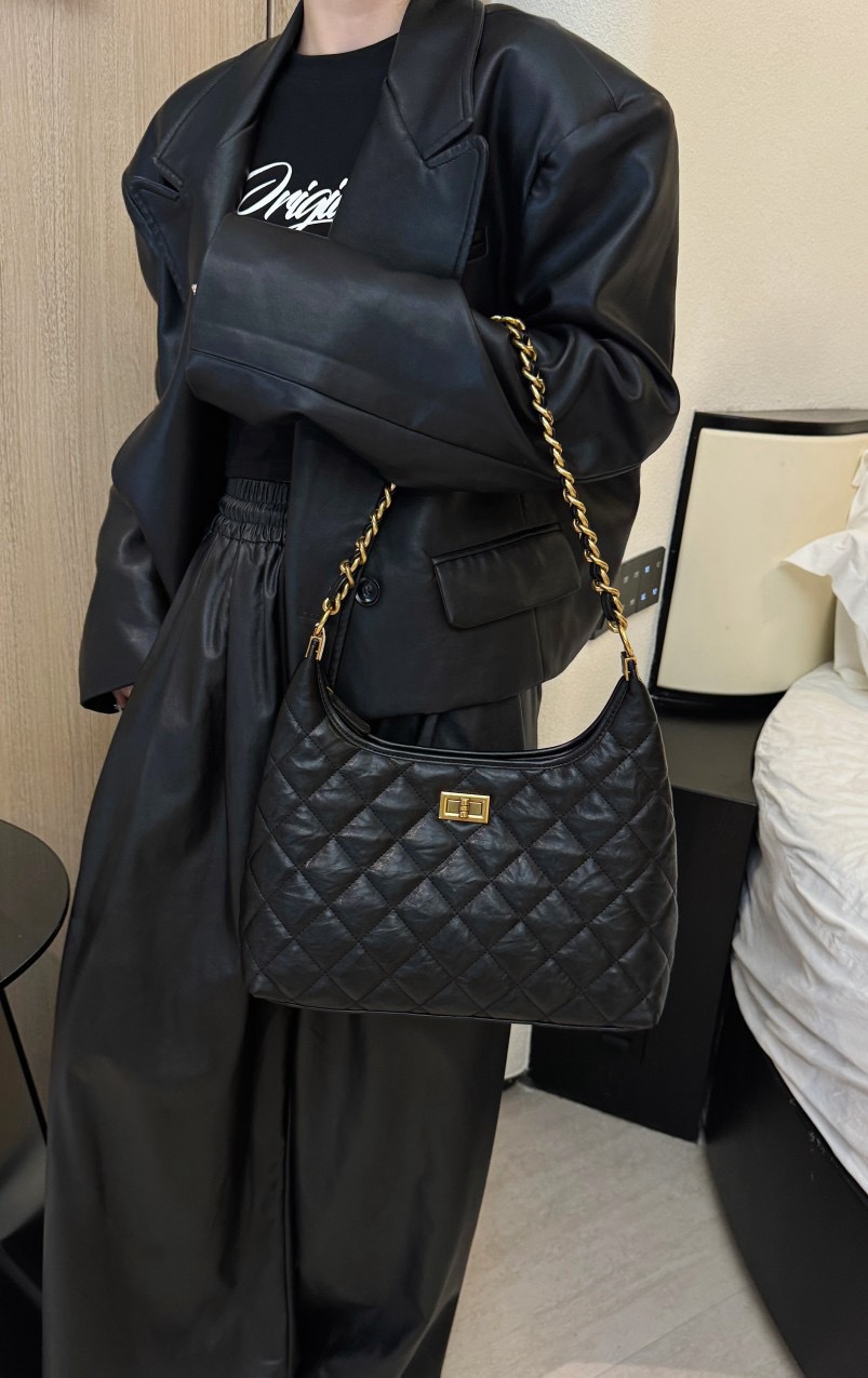 Color: 32 matte black chain + leather shoulder strap high quality in stock collection gift