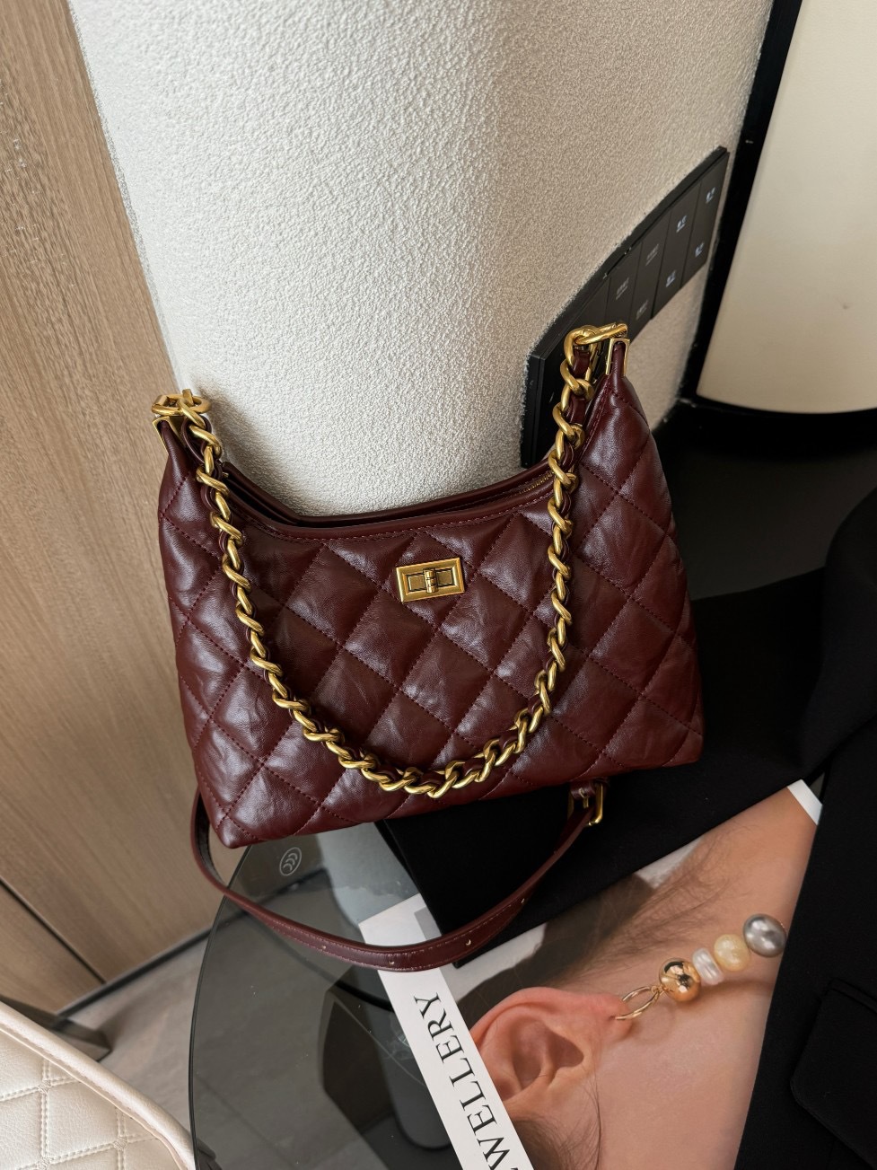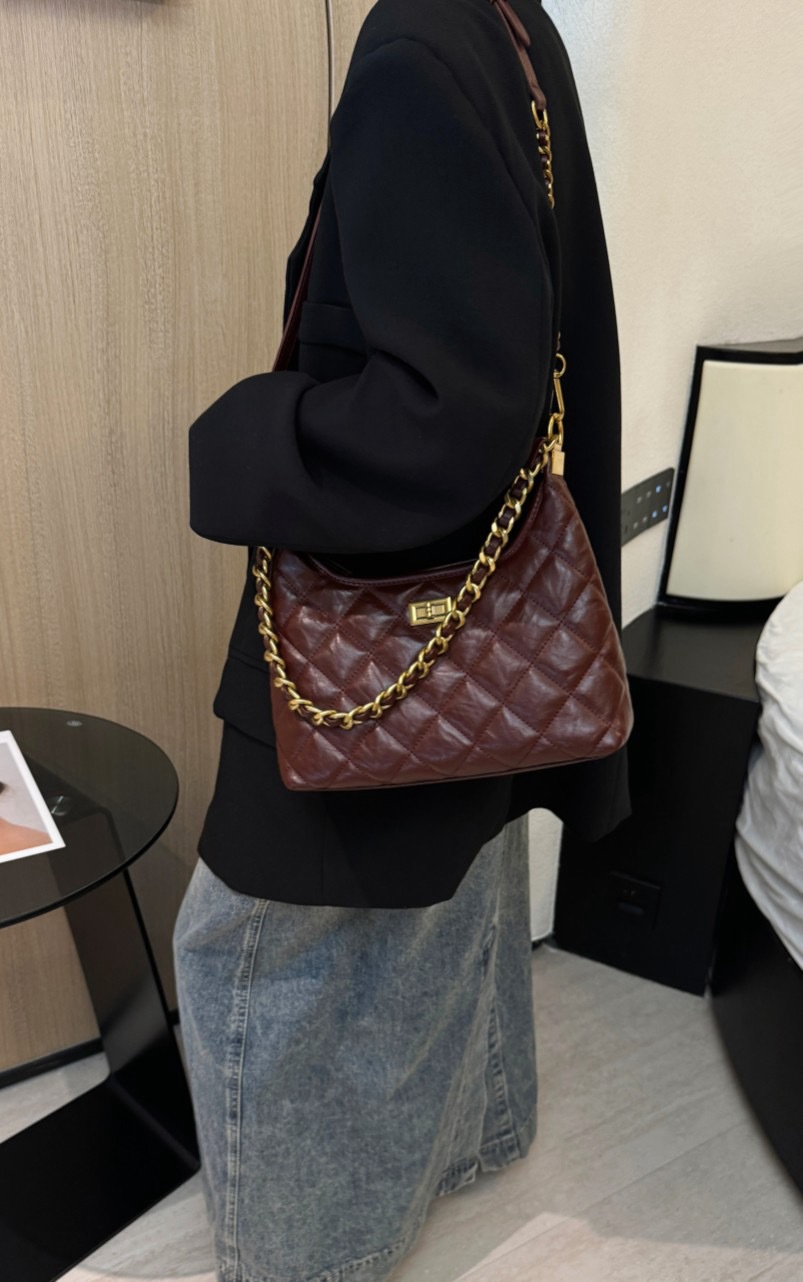 Color: 32 matte coffee chain + leather shoulder strap high quality in stock collection and gift