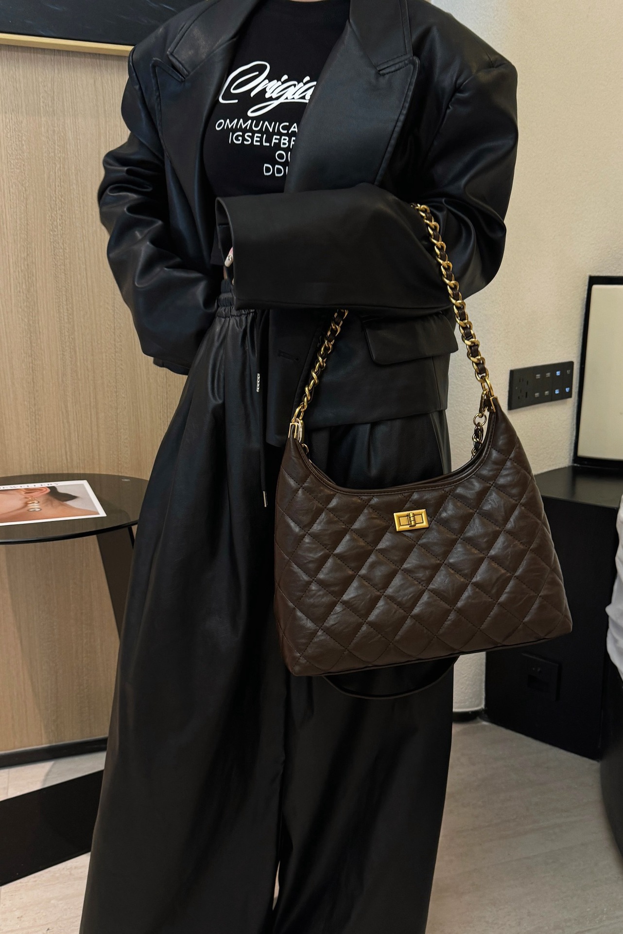 Color: 23 matte coffee chain + leather shoulder strap high quality in stock collection and gift