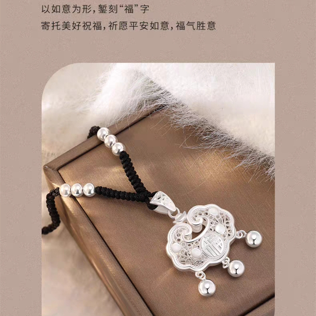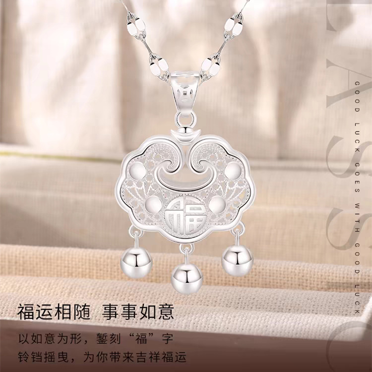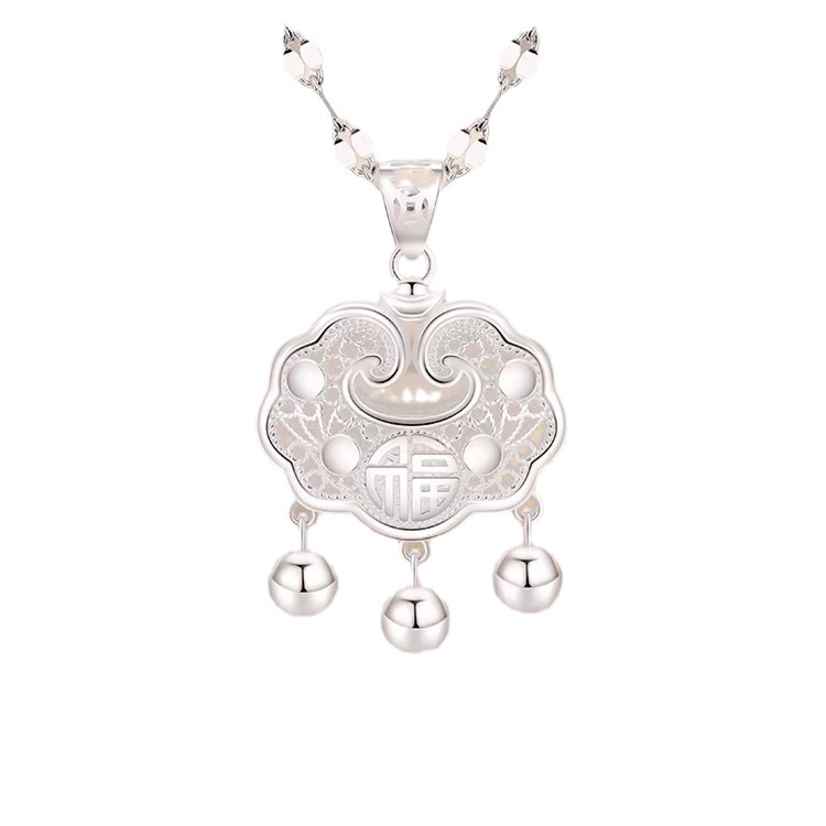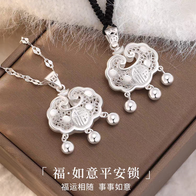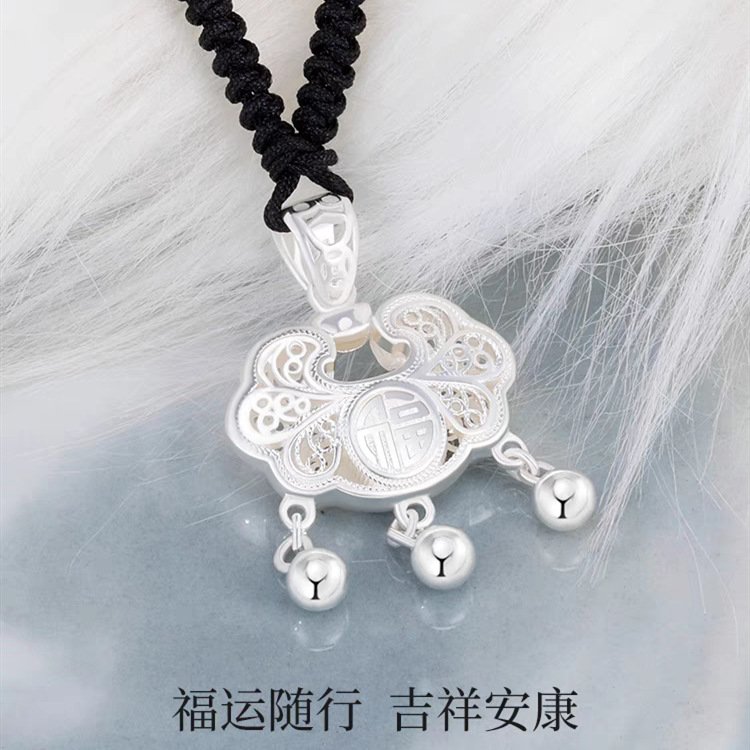 Chinese Style White Copper Jewelry Guochao Fu Character Ping An Lock Pendant Retro Hollow Filament Live Same Style Chinese Style Pendant