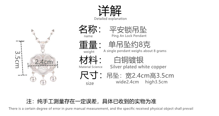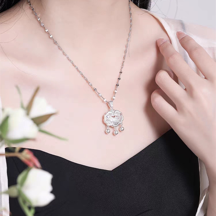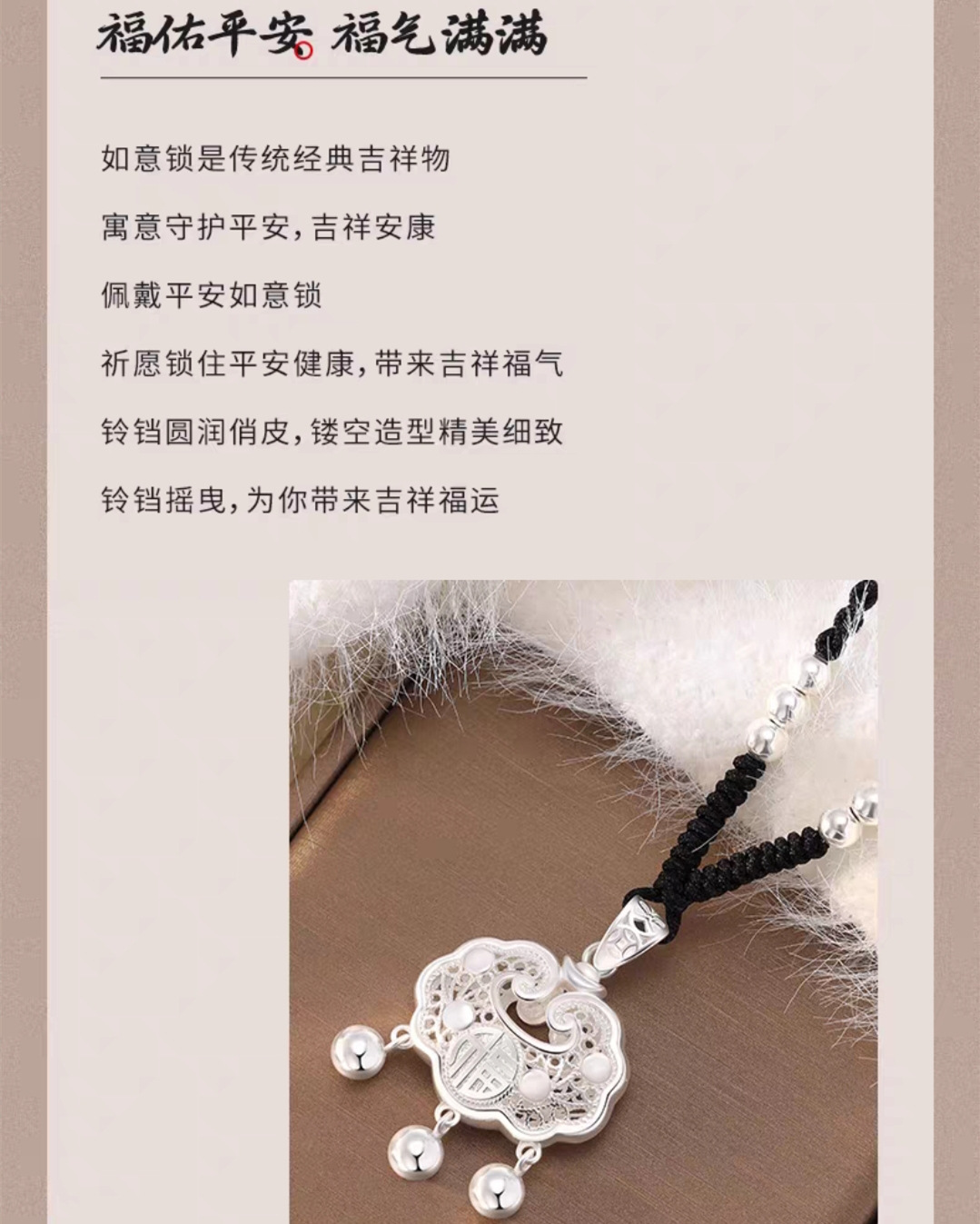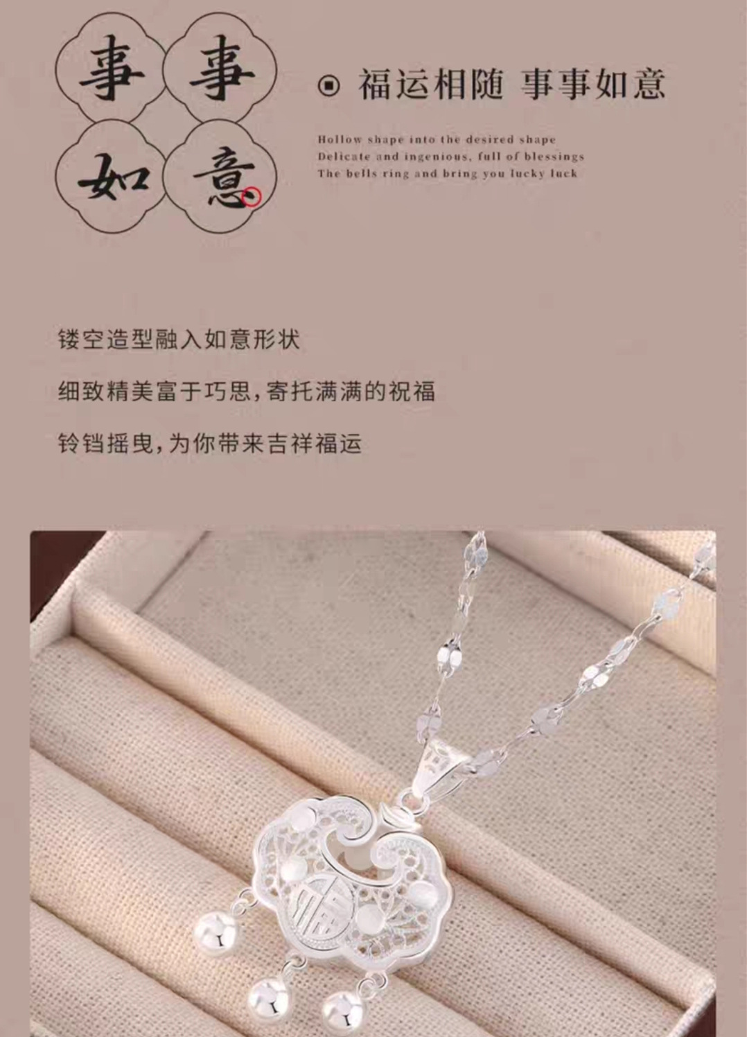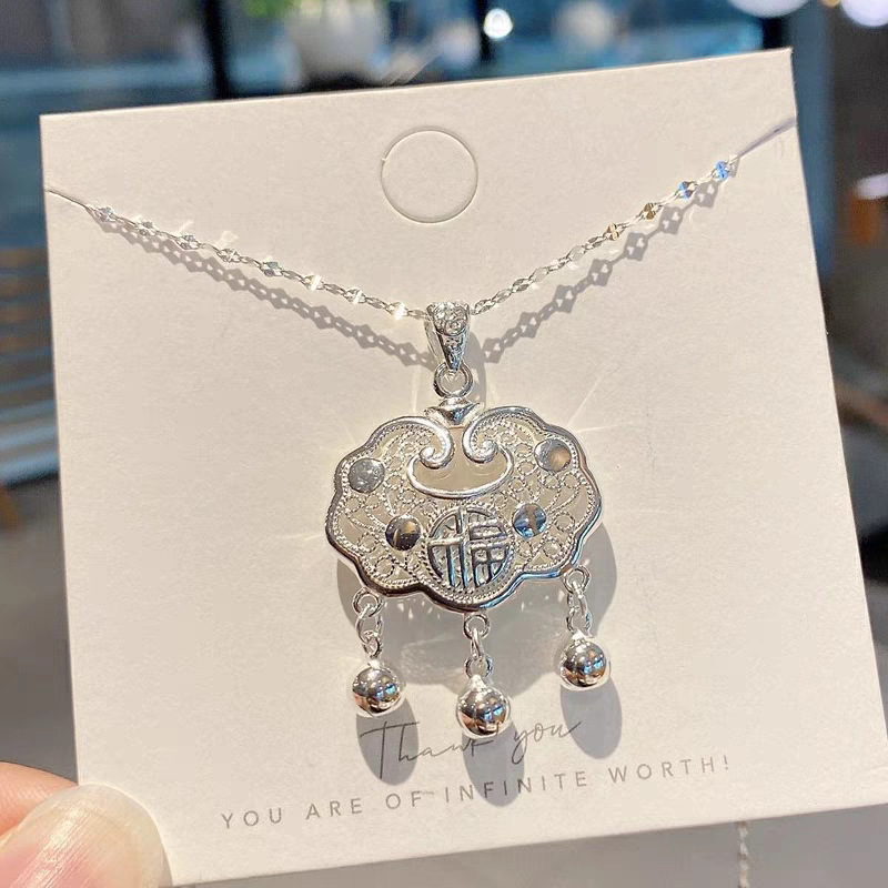 Chinese Style White Copper Jewelry Guochao Fu Character Ping An Lock Pendant Retro Hollow Filament Live Same Style Chinese Style Pendant