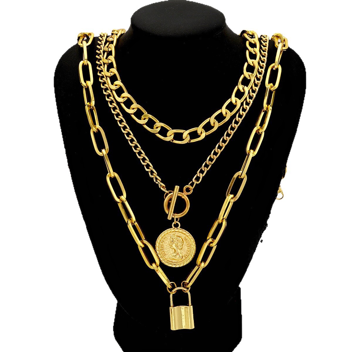 European and American Cross-Border Best-Selling Women's Necklace Set Accessible Luxury Elegant Embossed Round Plate Pendant Ot Buckle Three-Layer Necklace