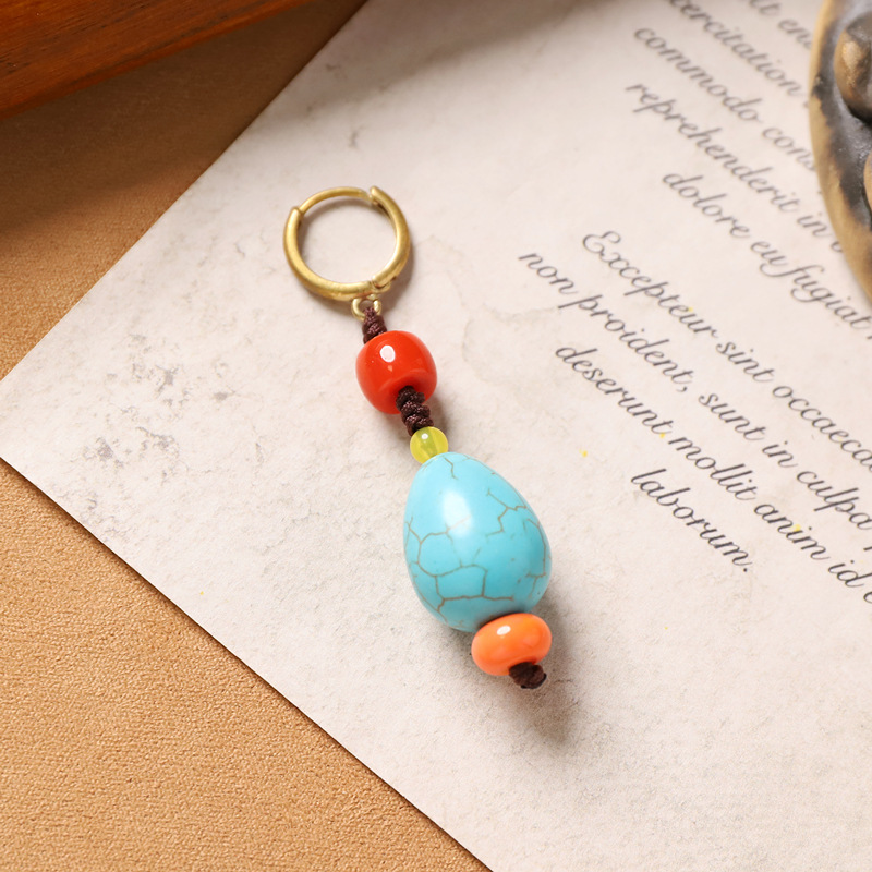 Xizang Woven Turquoise Ear Buckle Retro Ear Ring Ethnic Style Men's Ear Stud Distinctive Xizang Ding Zhen Earrings Women's Earrings