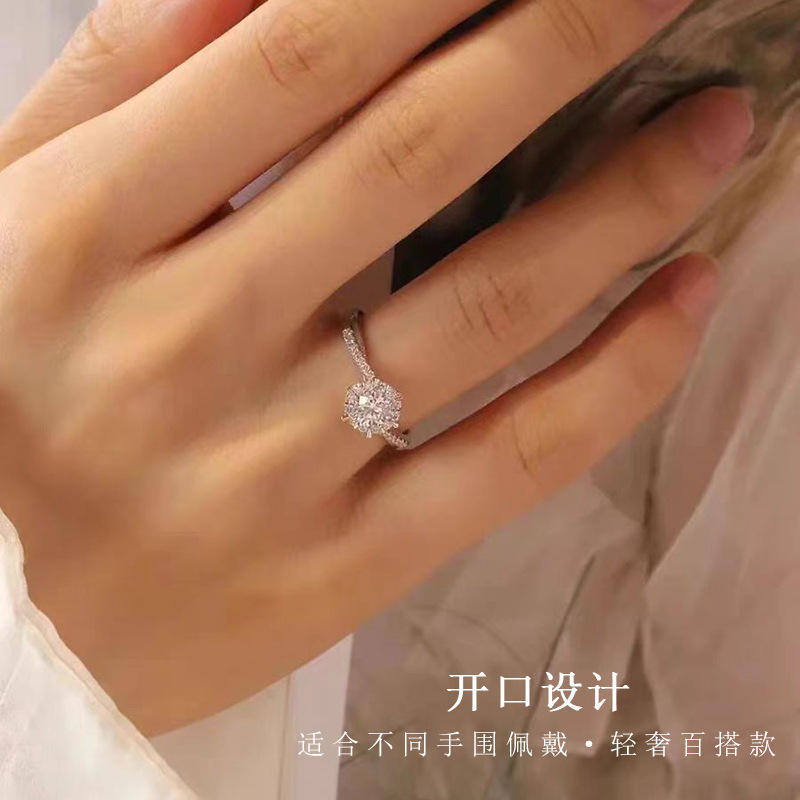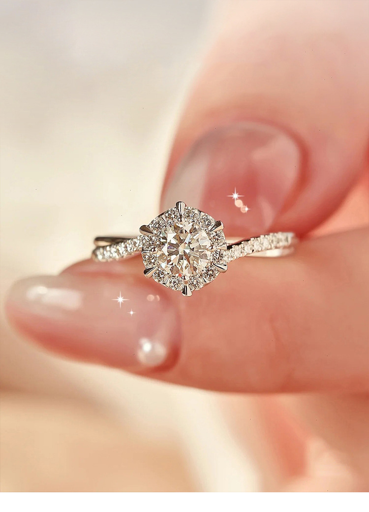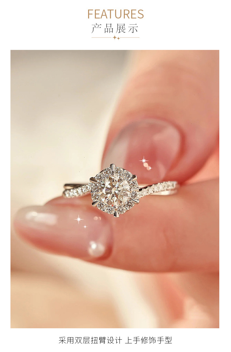 Imitation Moissanite Ring Women's Flash Diamond Proposal Engagement Opening Twist Finger Ring for Wife Wedding Anniversary Gift
