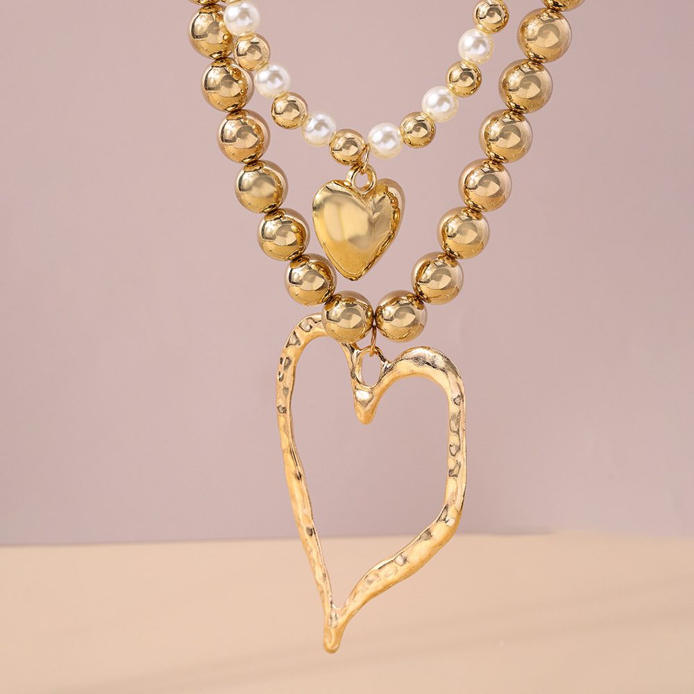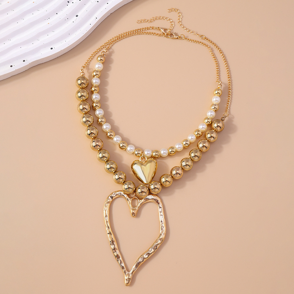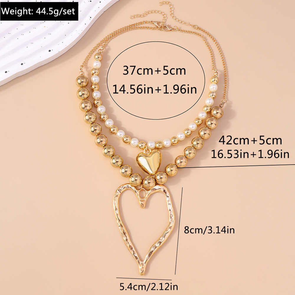 Explosive European and American cross-border jewelry beaded necklace suit creative personality heart love fashion high-end clavicle chain women