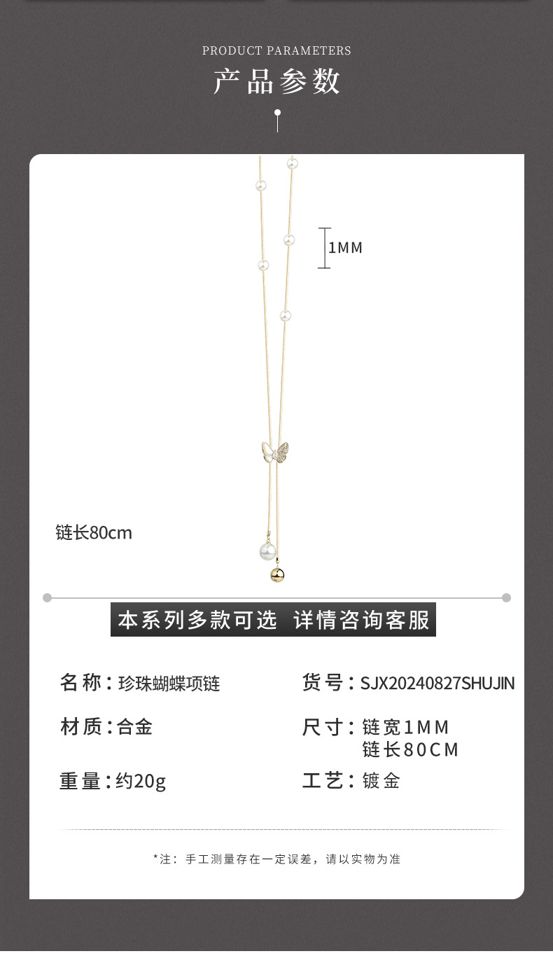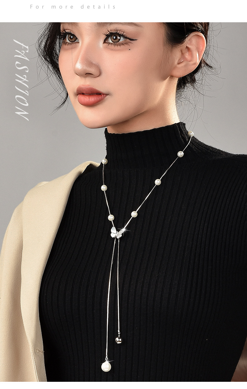 Factory direct butterfly necklace women's 2024 new star artificial pearl long sweater chain light luxury high-end feeling