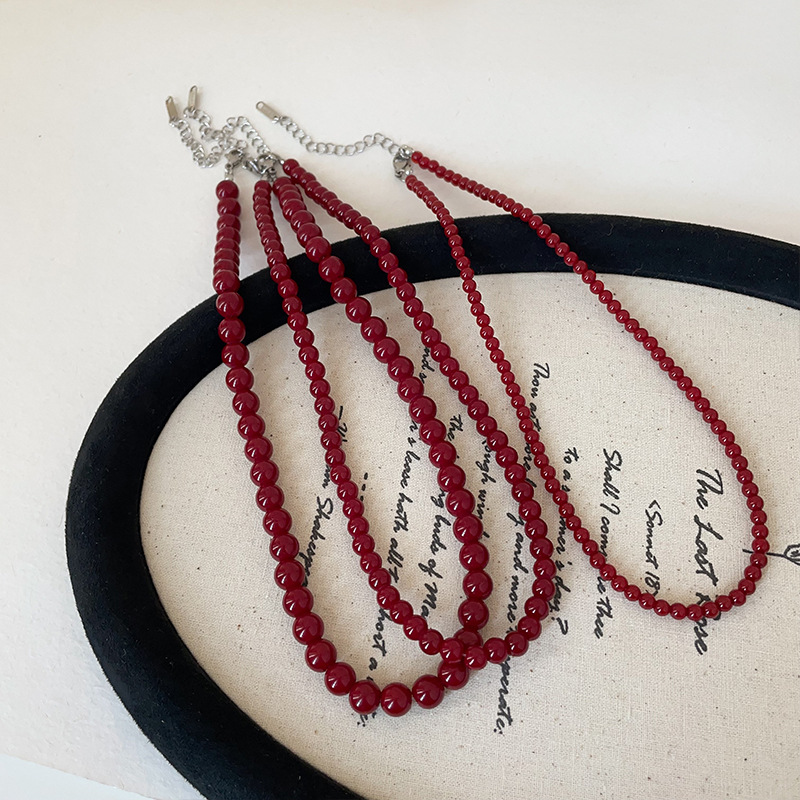 Ankora Red Pearl Beaded Necklace Women's 2024 Autumn and Winter New Retro Light Luxury All-match Necklace Chain