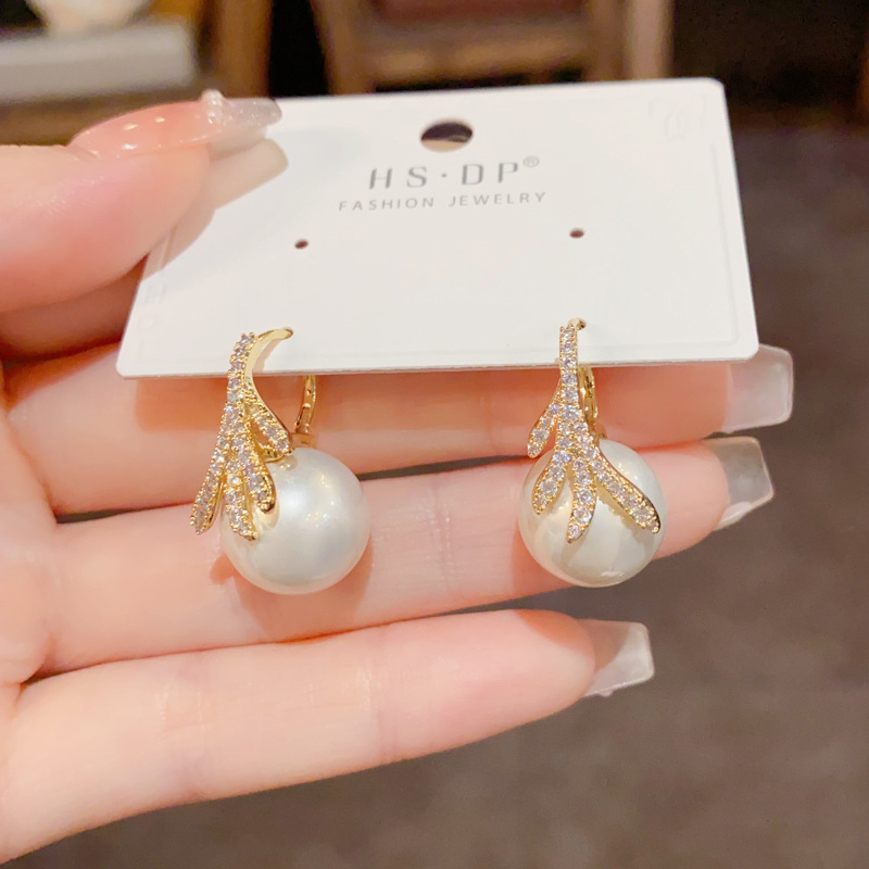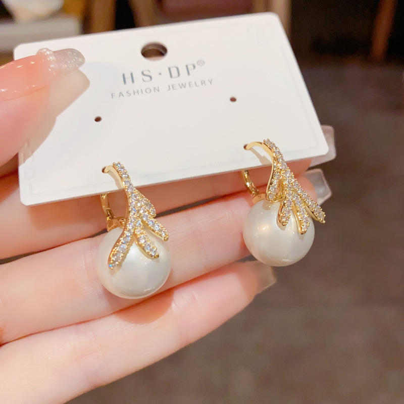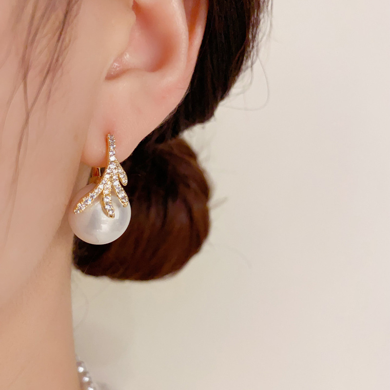 Color: Gold-zircon branch pearl ear buckle (thick gold plating)