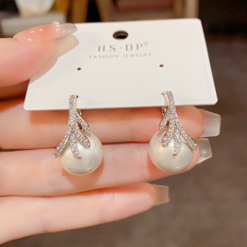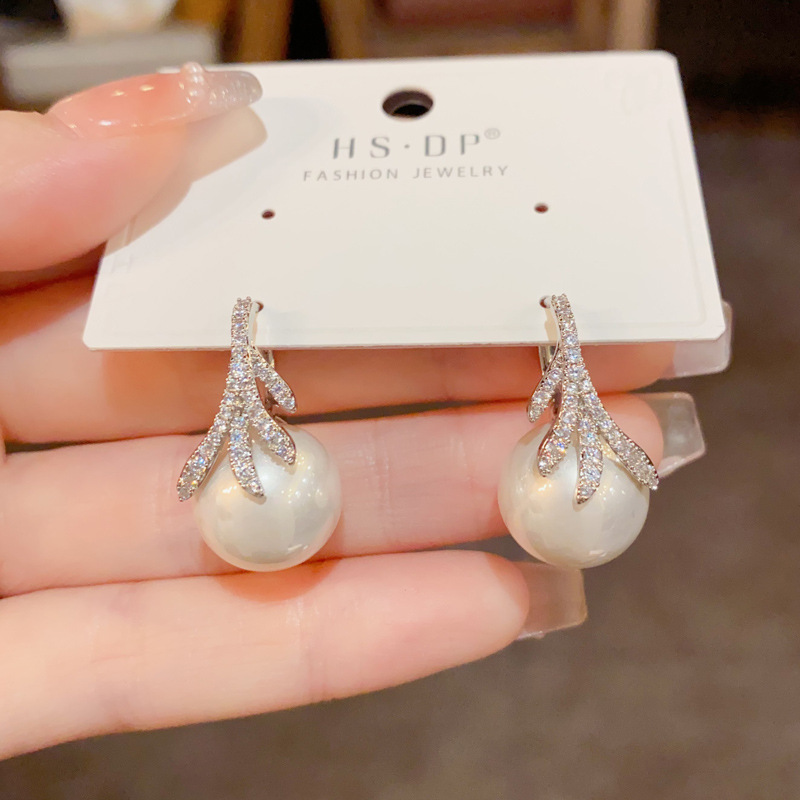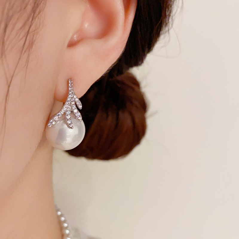 Color: silver-Zircon branch pearl ear buckle (thick gold plating)