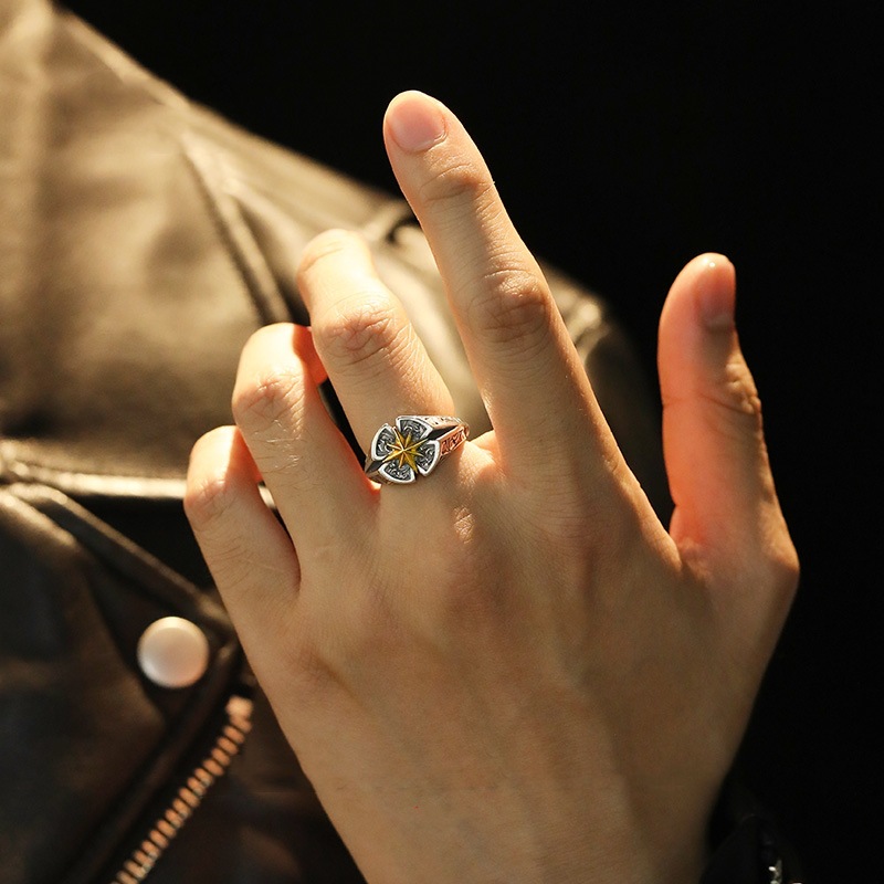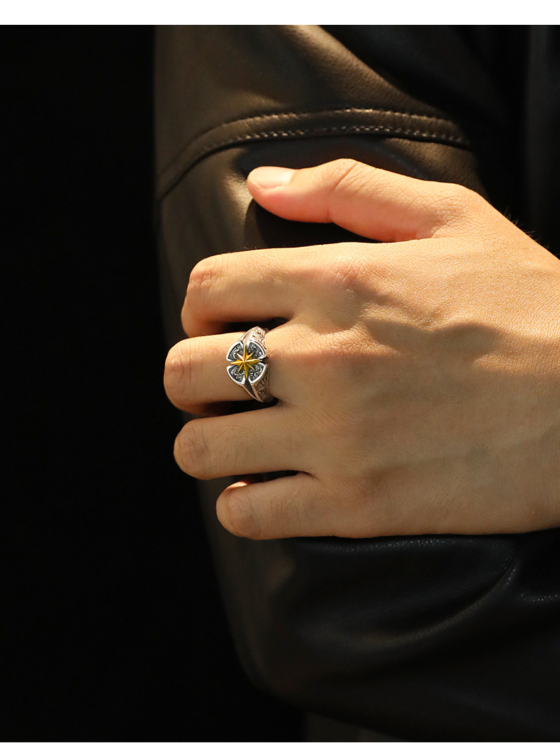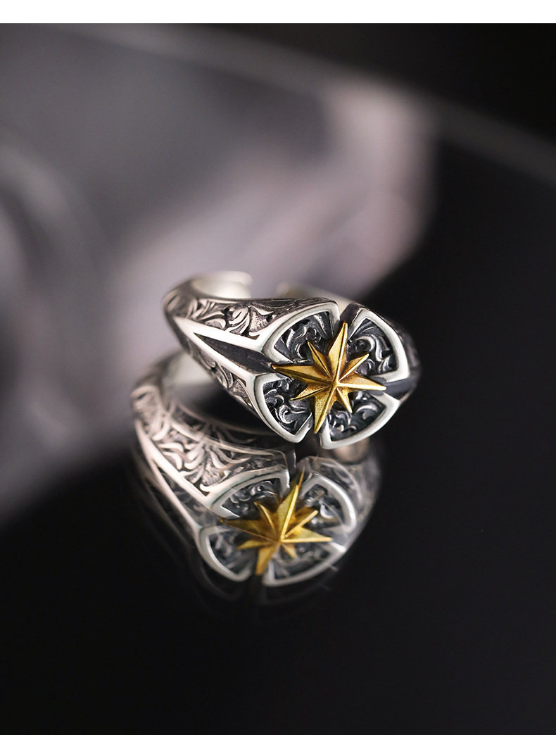 Seven shang retro "Polaris" Thai silver ring men's high-level sense tide brand ruffian handsome star mans tail ring index finger ring