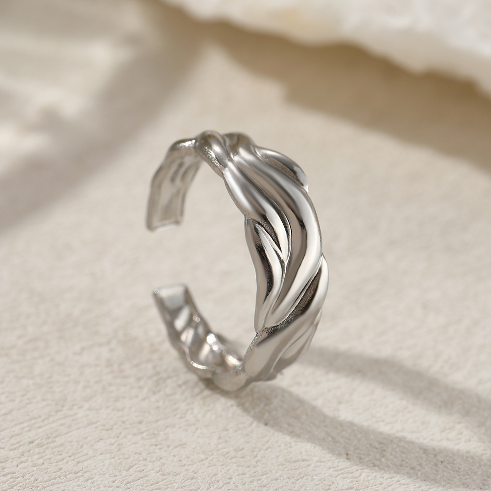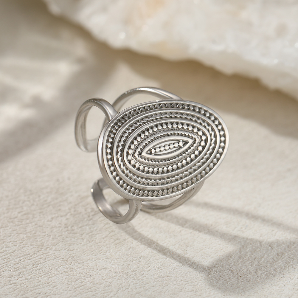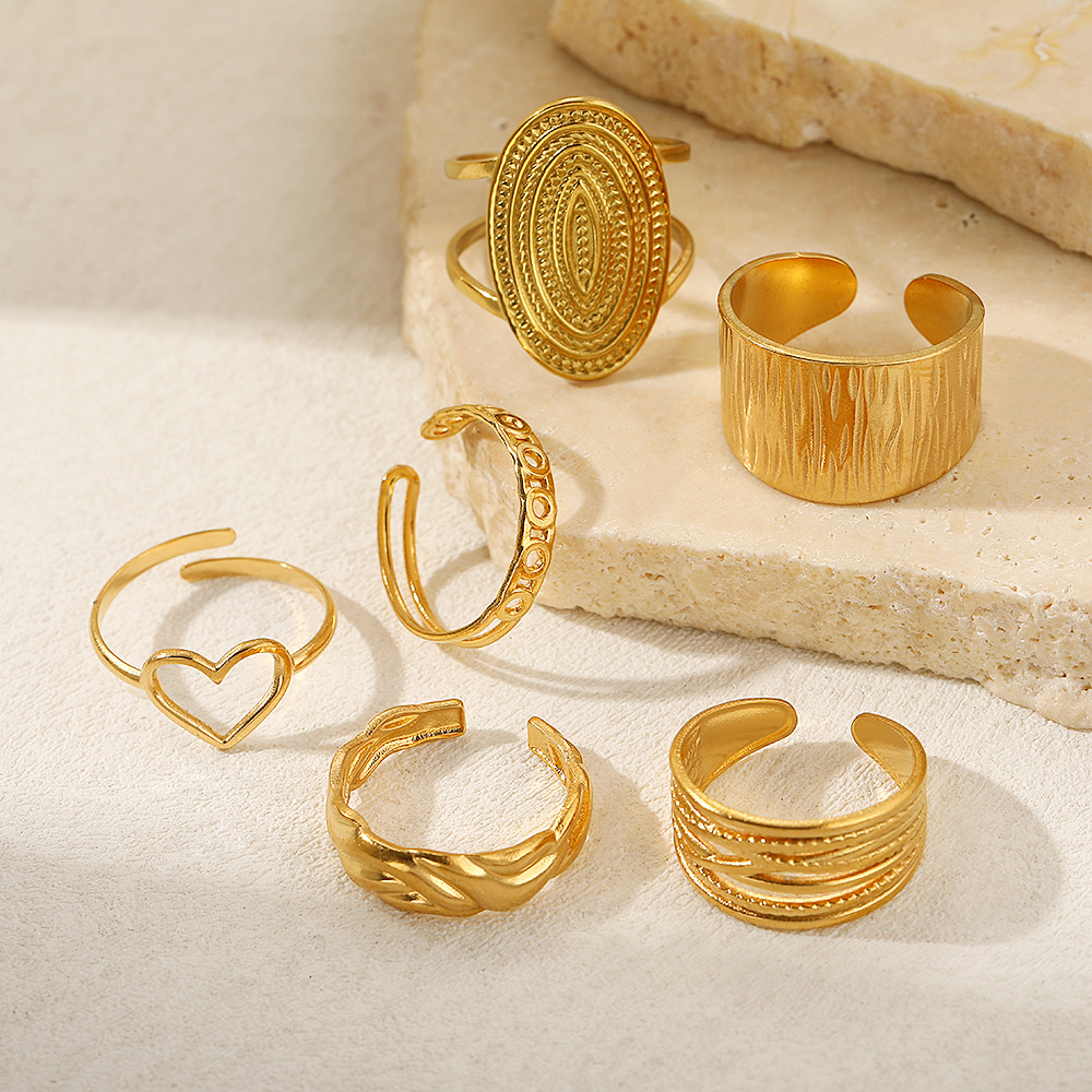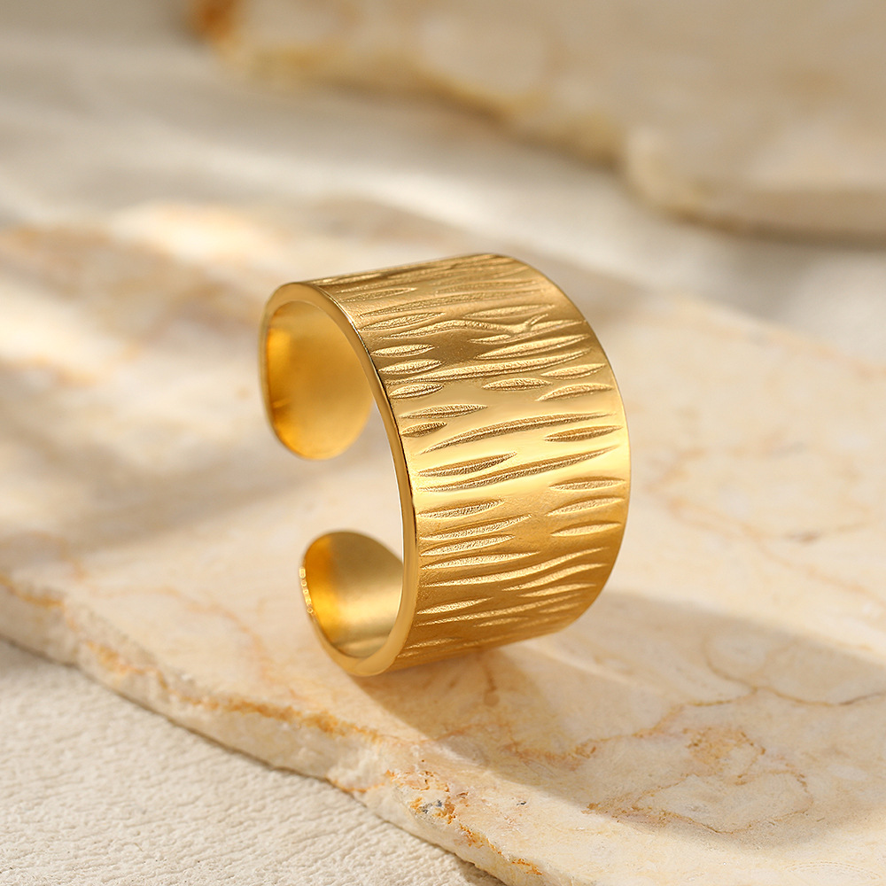 European and American ins style wide-face geometric ring personality all-match 18K gold-plated opening adjustable stainless steel ring for women