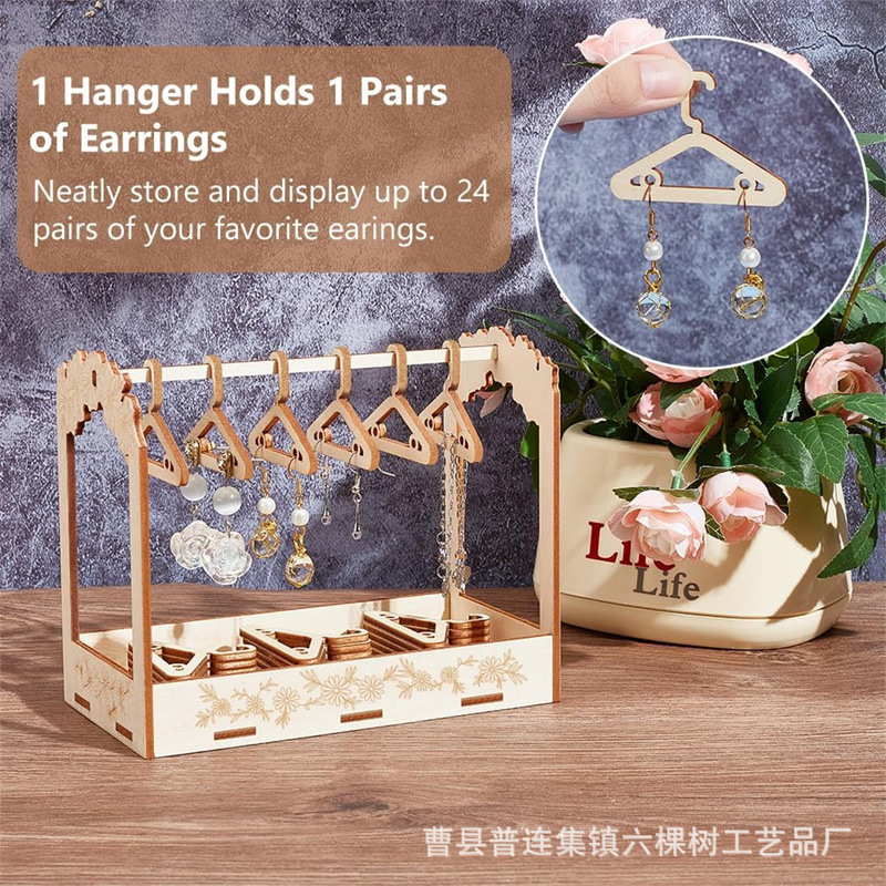 Wooden Jewelry Rack Countertop Earrings Hanging Rack Shop Counter Earrings Ear Studs Display Rack Creative Solid Wood Jewelry Rack