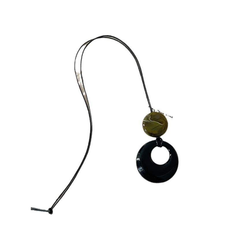 Natural Pendant Long Black Leather Rope Necklace Women's Niche Design Stylish Simple Versatile Fashion Neck Chain Clavicle Chain