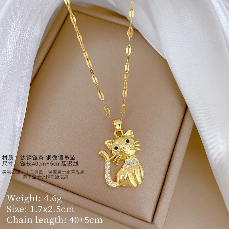 Black-Eyed Cat Zircon [Titanium Steel] Accessible Luxury Elegant Gorgeous Full Diamond Necklace Women's Versatile Clavicle Chain Titanium Steel Chain