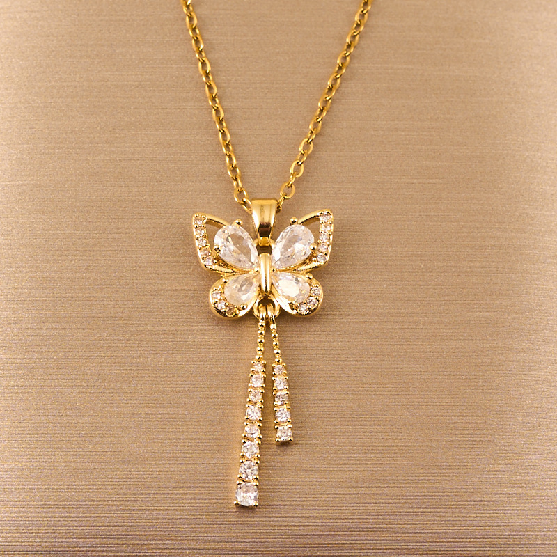 Butterfly Tassel [Titanium Steel] Light Luxury Temperament Gorgeous Diamond Necklace Female Internet Celebrity All-match Clavicle Chain Titanium Steel Chain