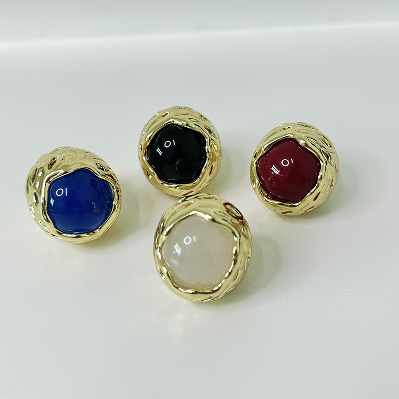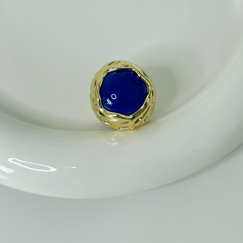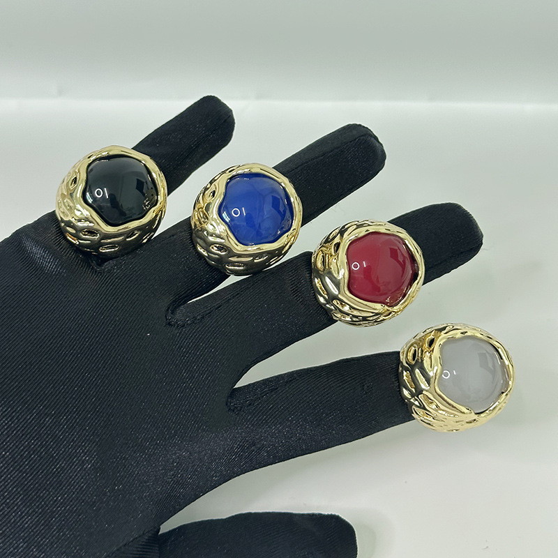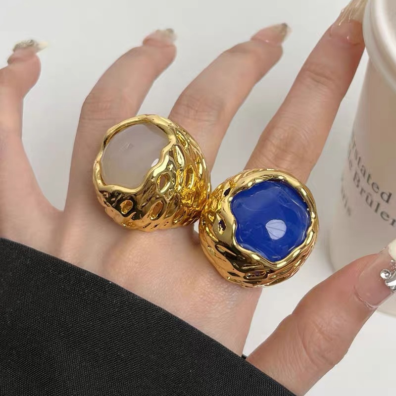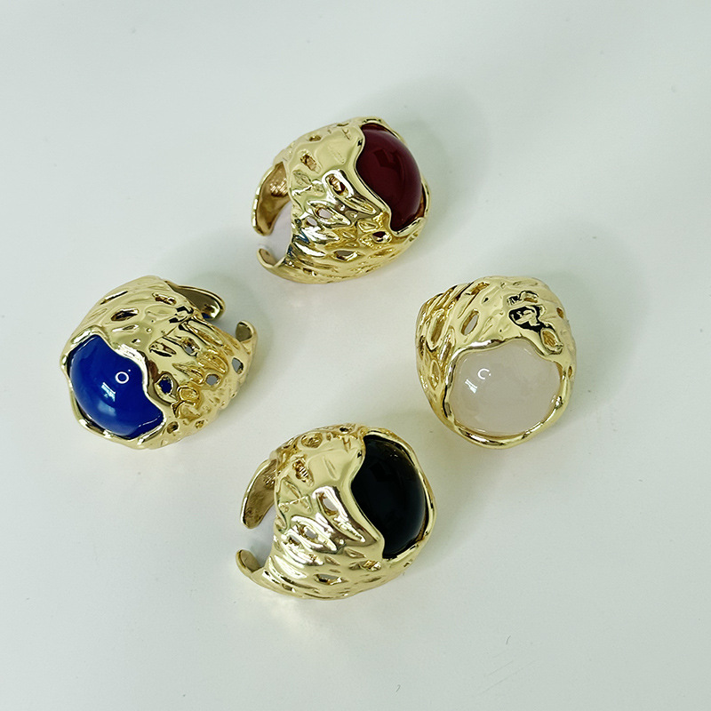 French Entry Luxury Round Honeycomb Lava Texture Inlaid Color Gem Ring Fashionable Elegant High-grade Sense Ring for Women