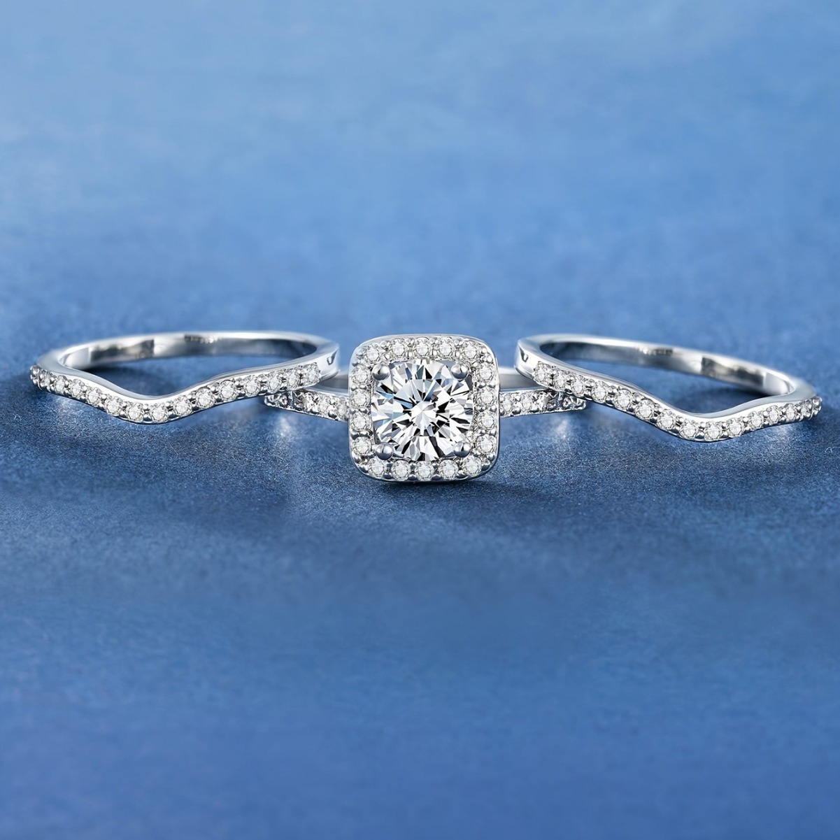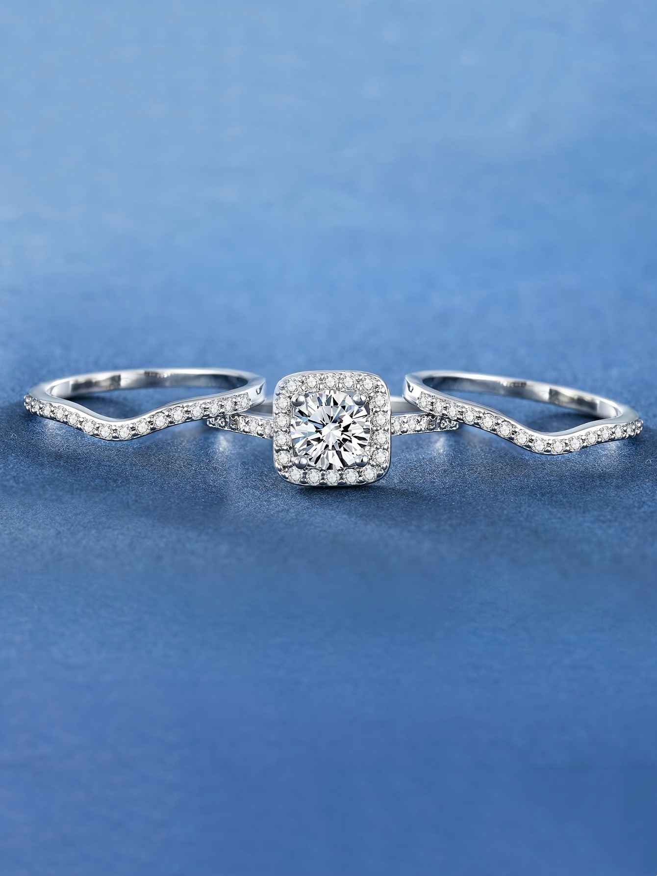 European and American Cross-border Three-piece Set Simple Elegant Square Zircon Stacked Style Ring Women's Fine Jewelry Wedding Gift