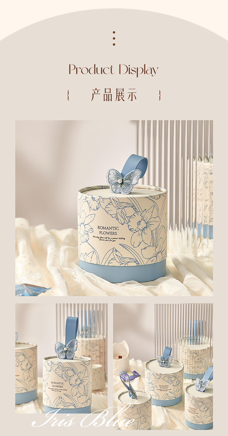 Specifications and models: "iris blue/h20 cylindrical box ""small"" 9.8*9.8*10cm; songhua (2024 new autumn product/one piece drop shipping/excellent cooperation price)"