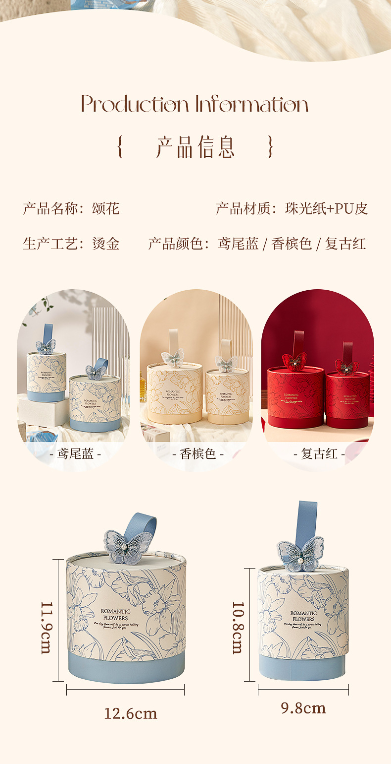 Specifications and models: "iris blue/h22 cylindrical box ""medium"" 12.6*12.6*11; songhua (2024 new autumn product/one piece drop shipping/excellent cooperation price)"