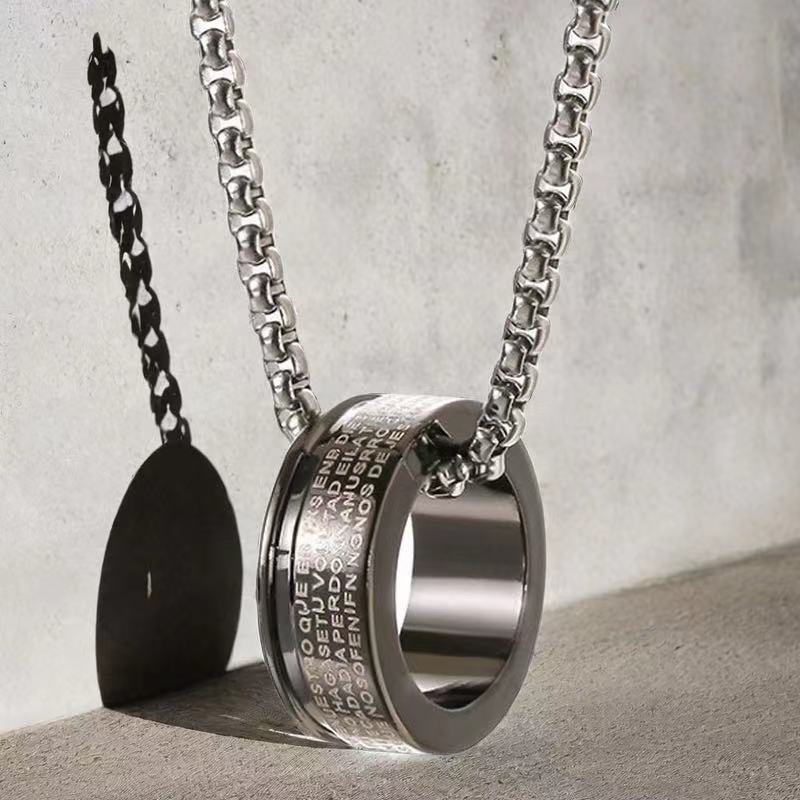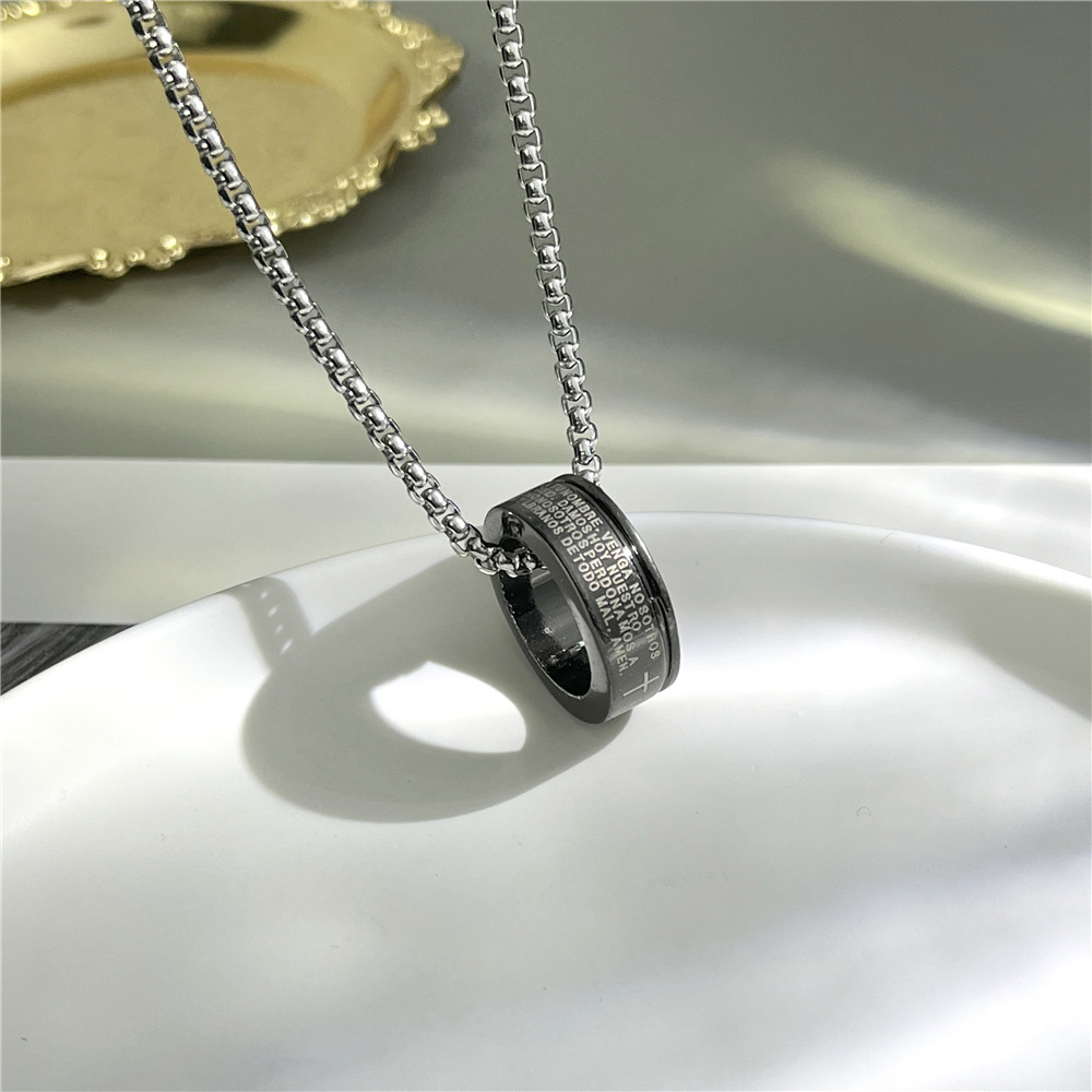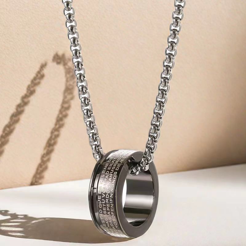 European and American All-match Titanium Steel Chain English Ring Necklace Pendant Men's Personality Trendy Hip Hop Pendant High-grade Accessories
