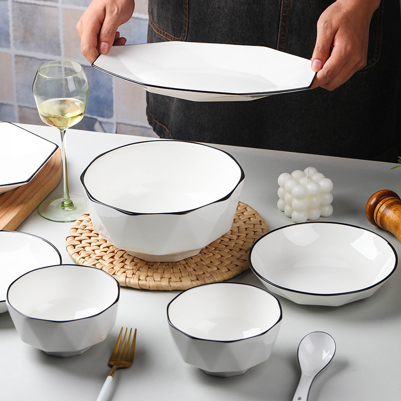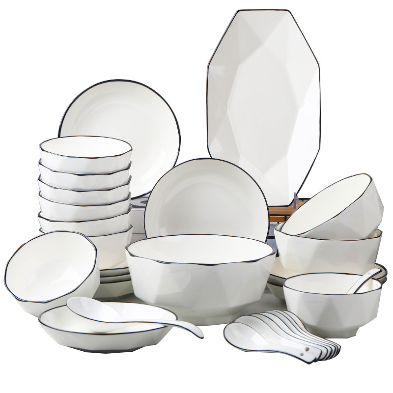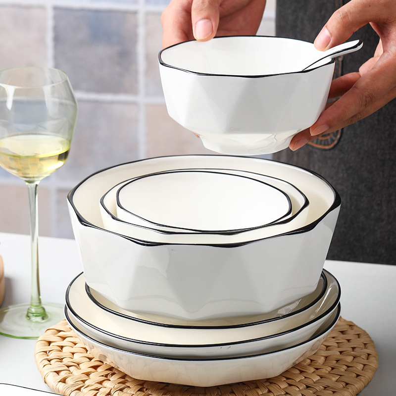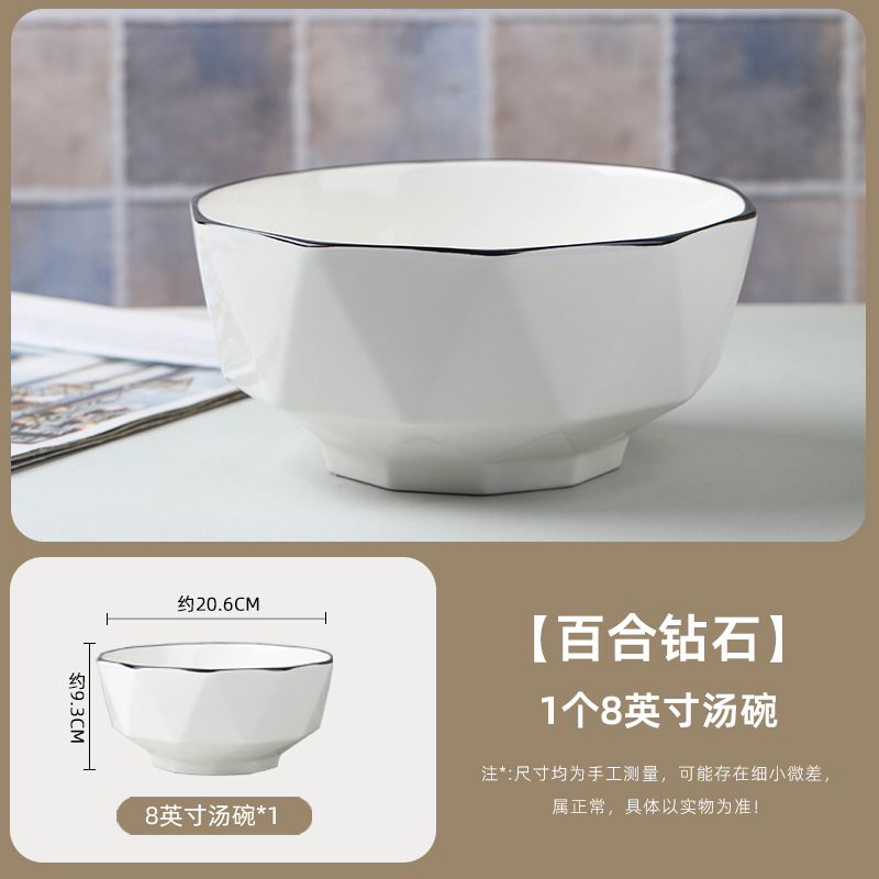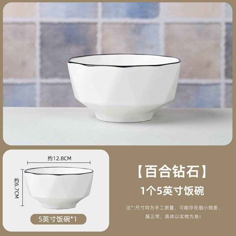 Free Matching Diy Lily Diamond Tableware Bowl Plate Combination Household New Ceramic Bowl Chopsticks Plate Rice Bowl suit