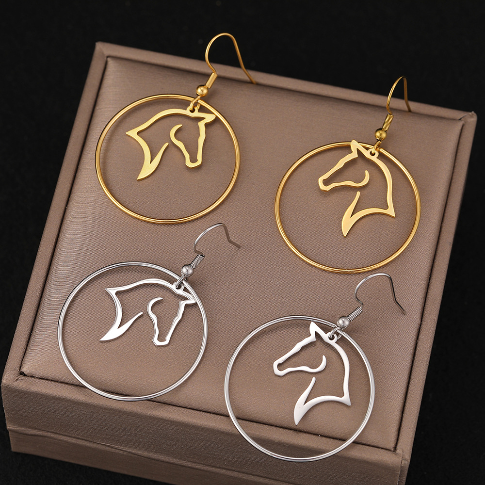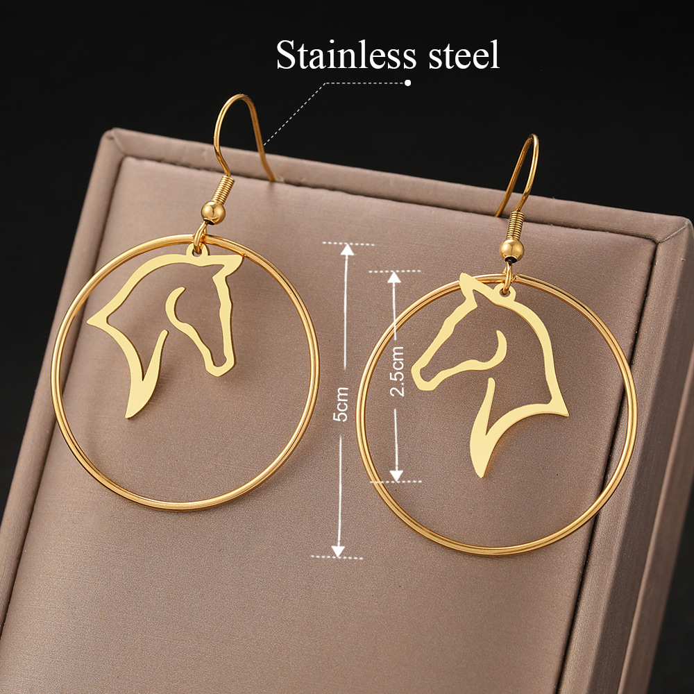 Cross-border European and American Hot Selling Fashion Simple INS Style Stainless Steel Hollow Horse Head Pendant Women's Earrings Titanium Steel Ear Hook