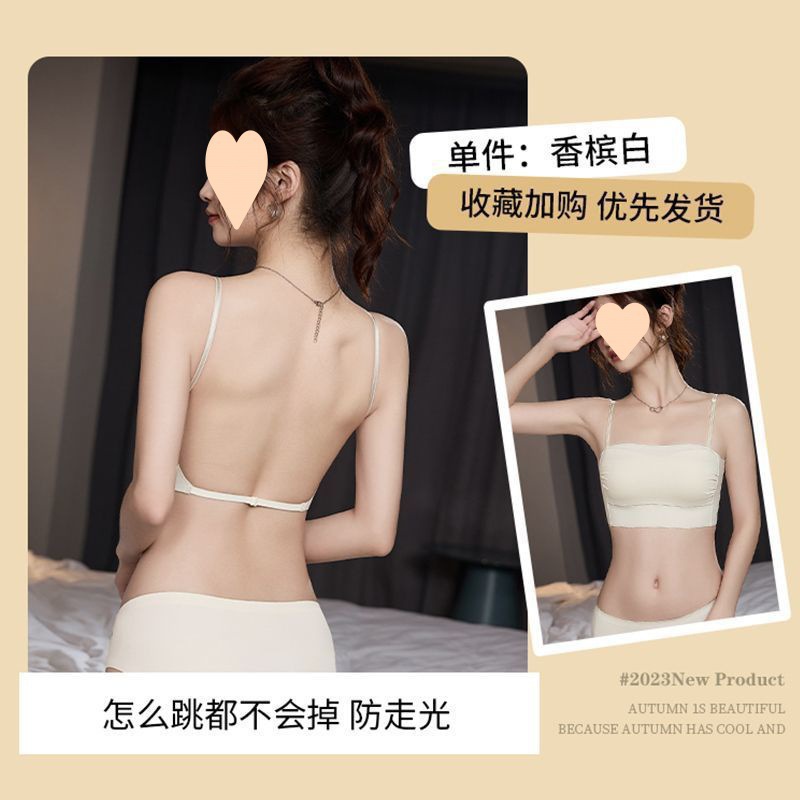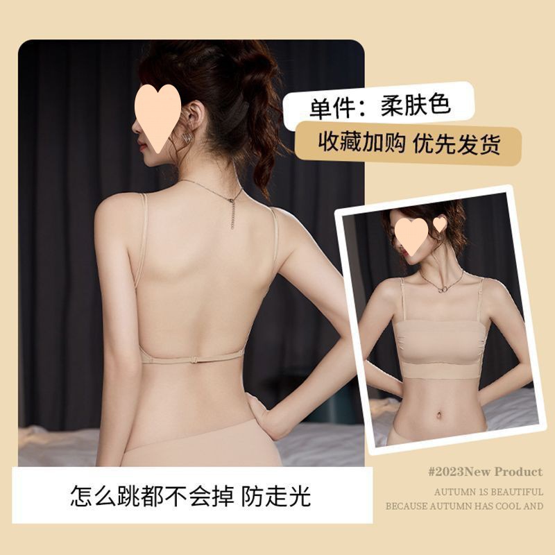 Seamless Backless Bra for Women, Summer Thin Style 2024 Hot Item, U-Shaped Backless Top, Integrated Chest Wrap, Anti-Exposure Bra