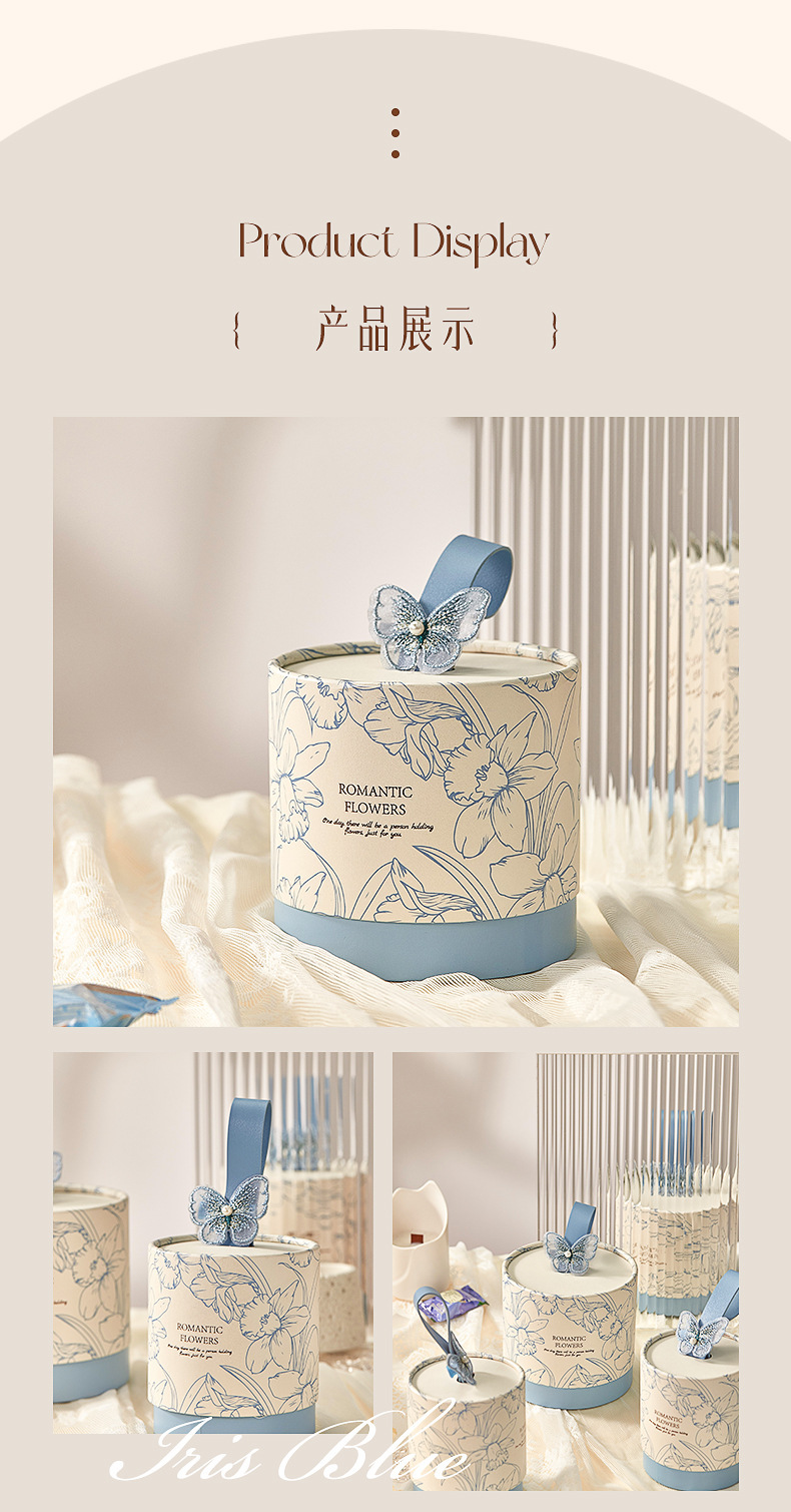 Specification model: Iris blue/h22 cylinder box (medium) 12.6*12.6*11; songhua (2024 autum new product/dropshipping/excellent cooperative price)