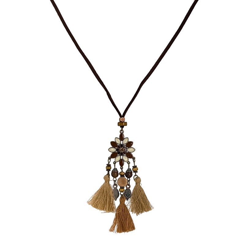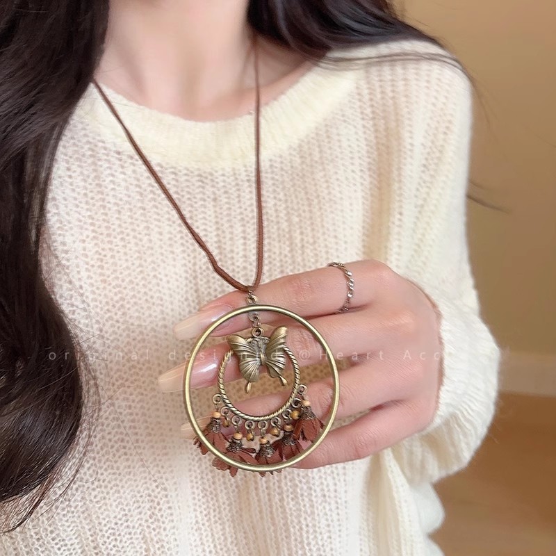 Foreign Ethnic Style Tassel Necklace Women's New Chinese Style Retro Long Autumn and Winter Woolen Chain Vacation All-match Clavicle Chain