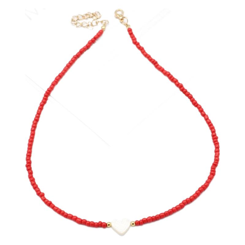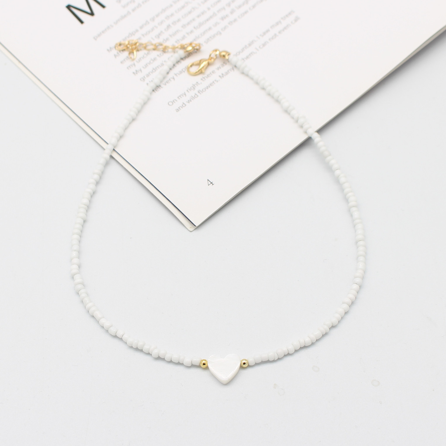 Bohemian-style hand-woven shell love rice beads beaded necklace simple clavicle chain cross-border supply