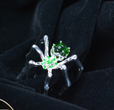 New Cross-Border European and American Spider Dark Punk Ring Ins Niche Design High-End Moonstone Metal Cold
