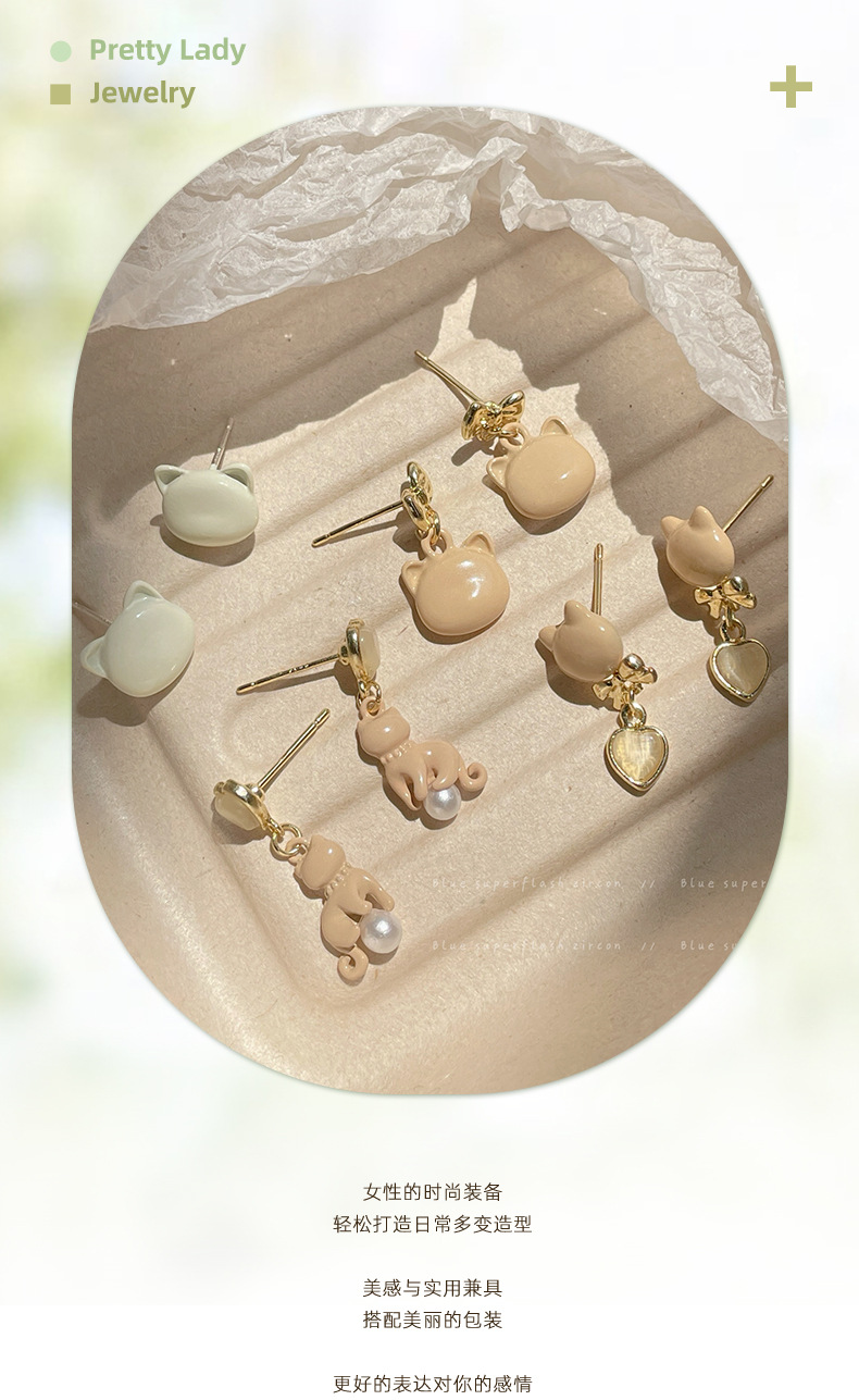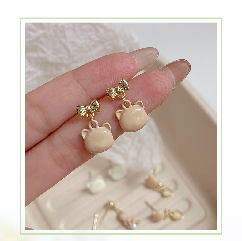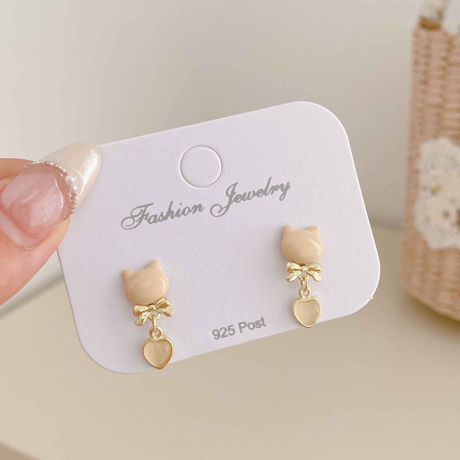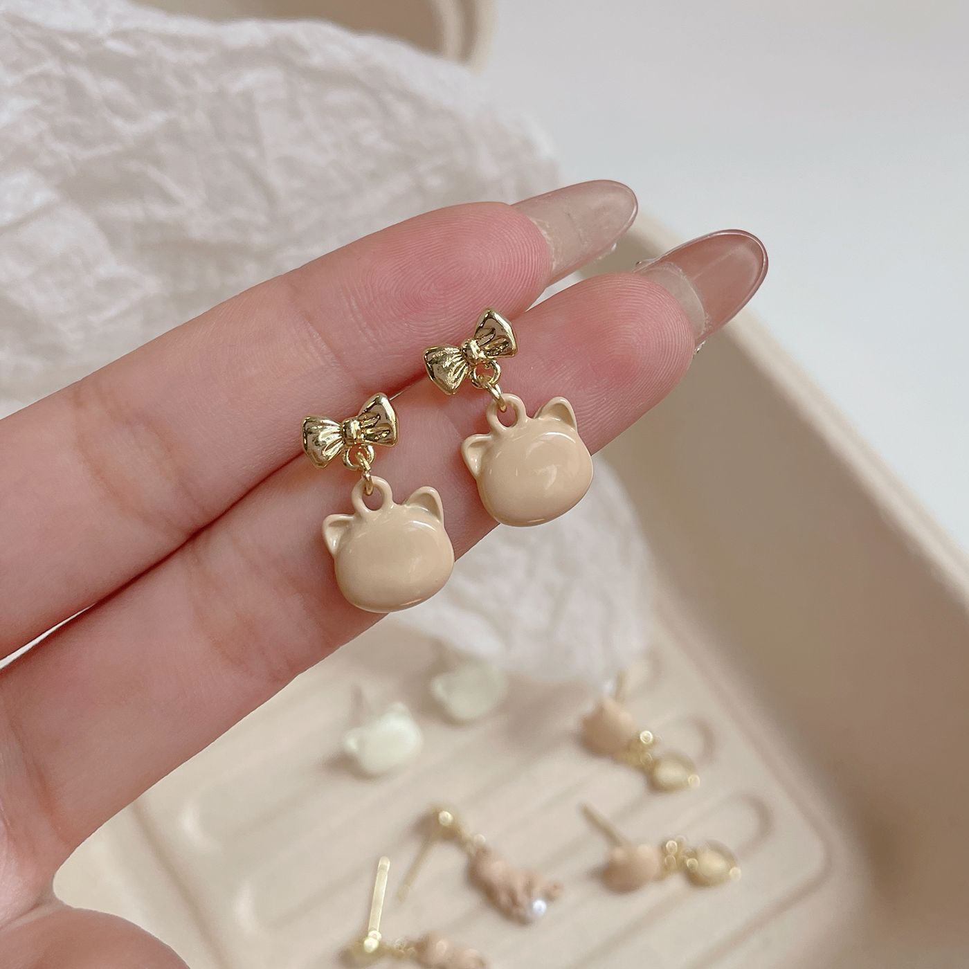 Summer New Lazy Cat Earrings Women's Silver Needle Maillard Cute Exquisite Cartoon Design Sweet Earrings