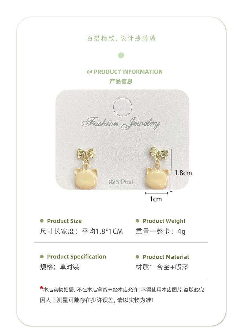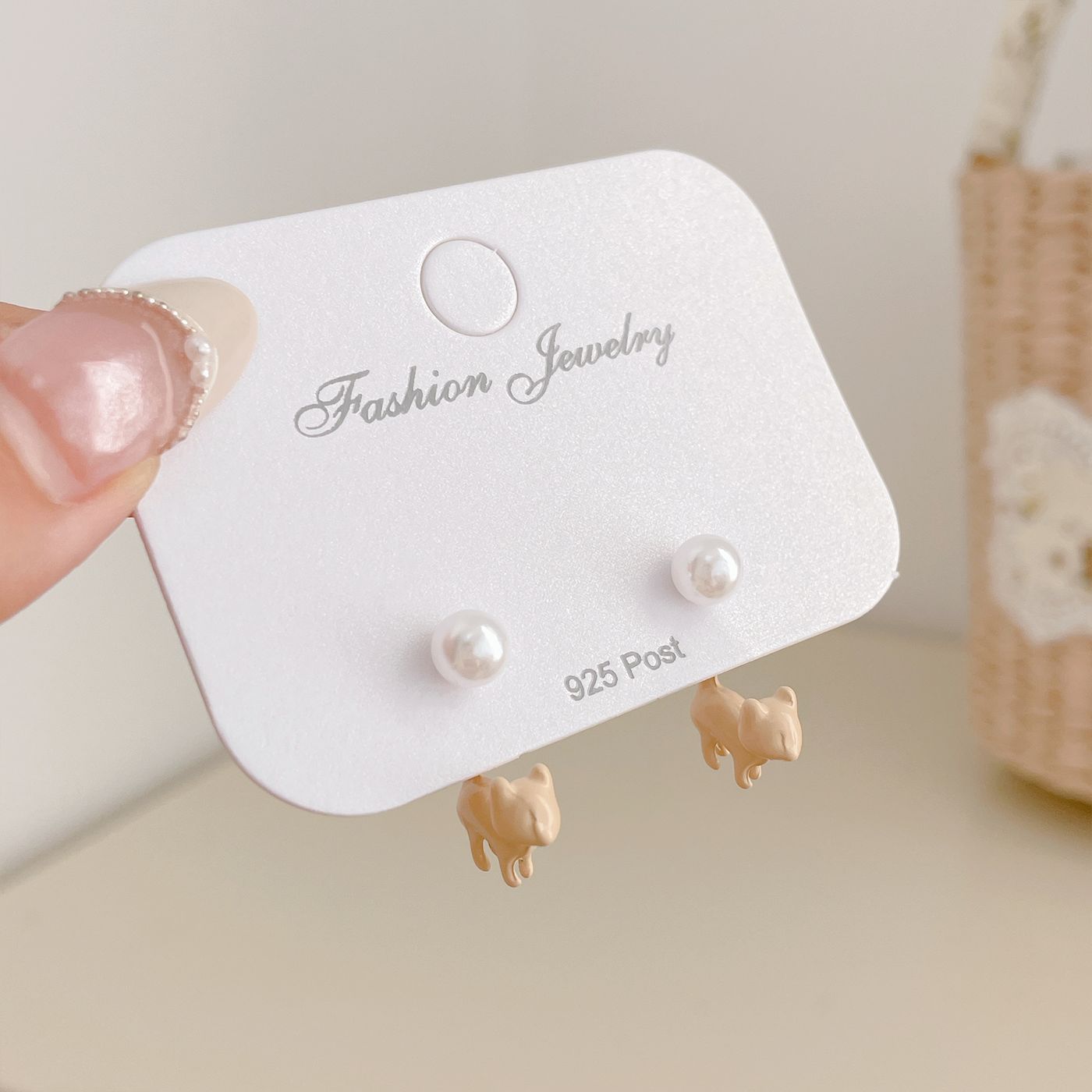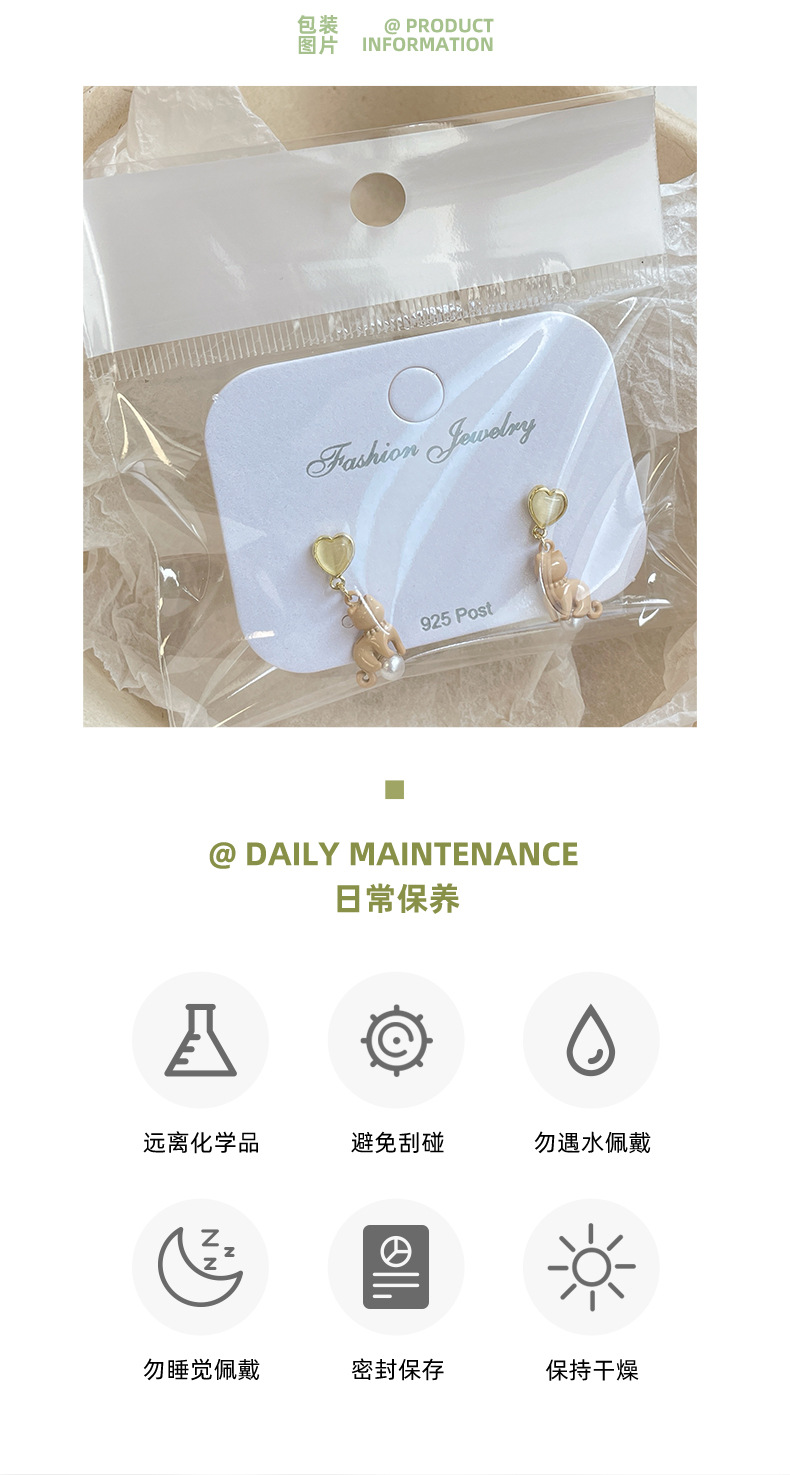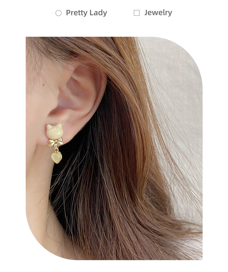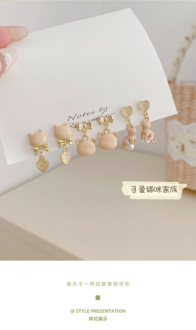 Summer New Lazy Cat Earrings Women's Silver Needle Maillard Cute Exquisite Cartoon Design Sweet Earrings