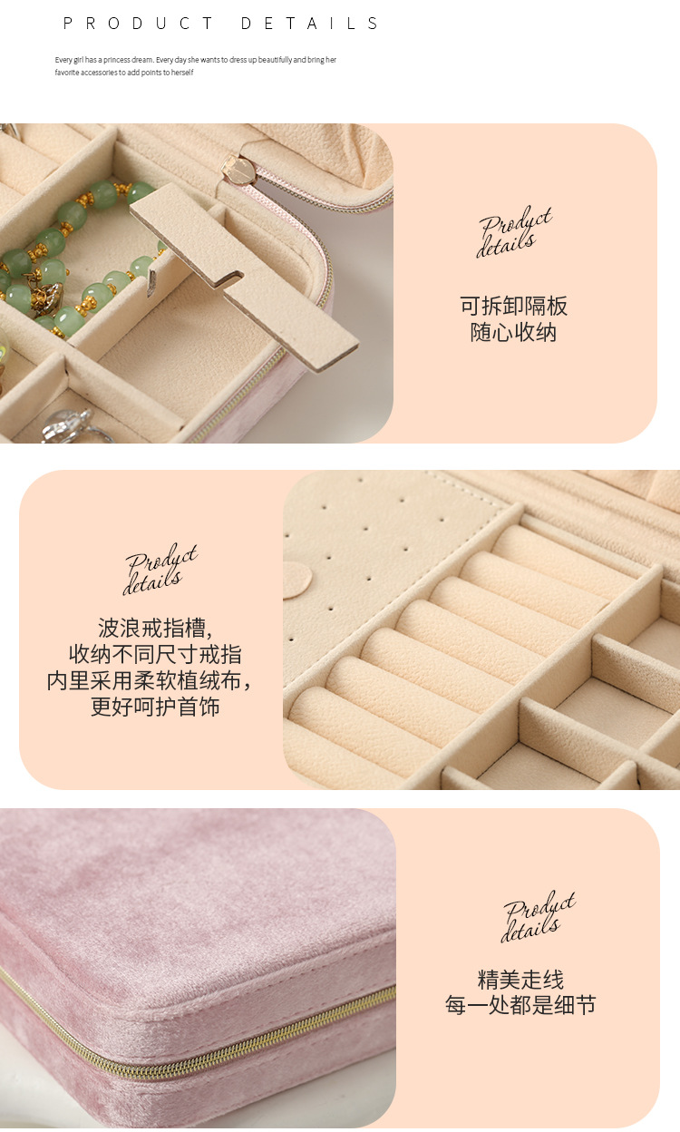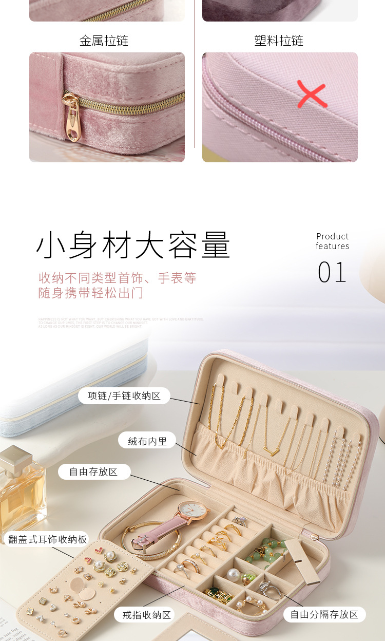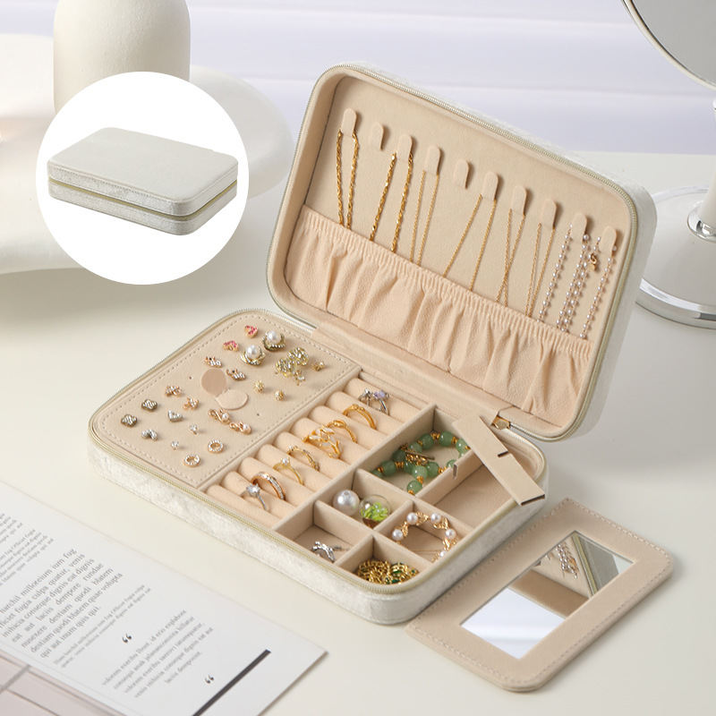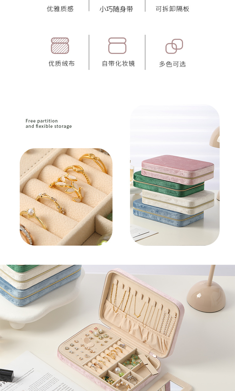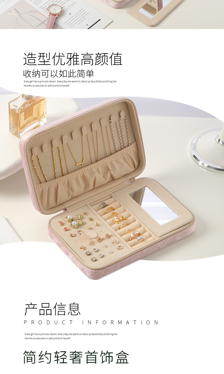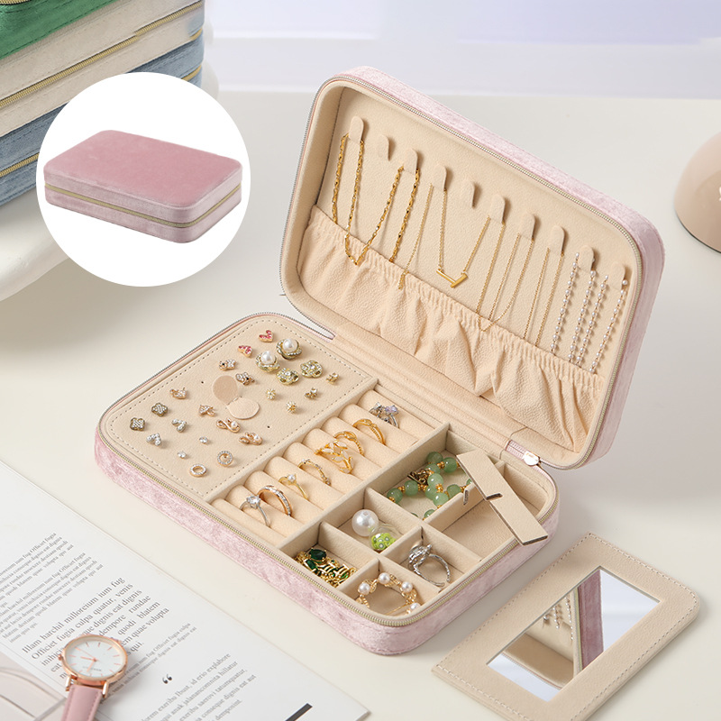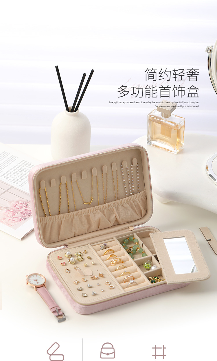 Velvet Girls Jewelry Storage Box Multifunctional Ring Necklace Earrings Watch Jewelry Box Wholesale Mirror
