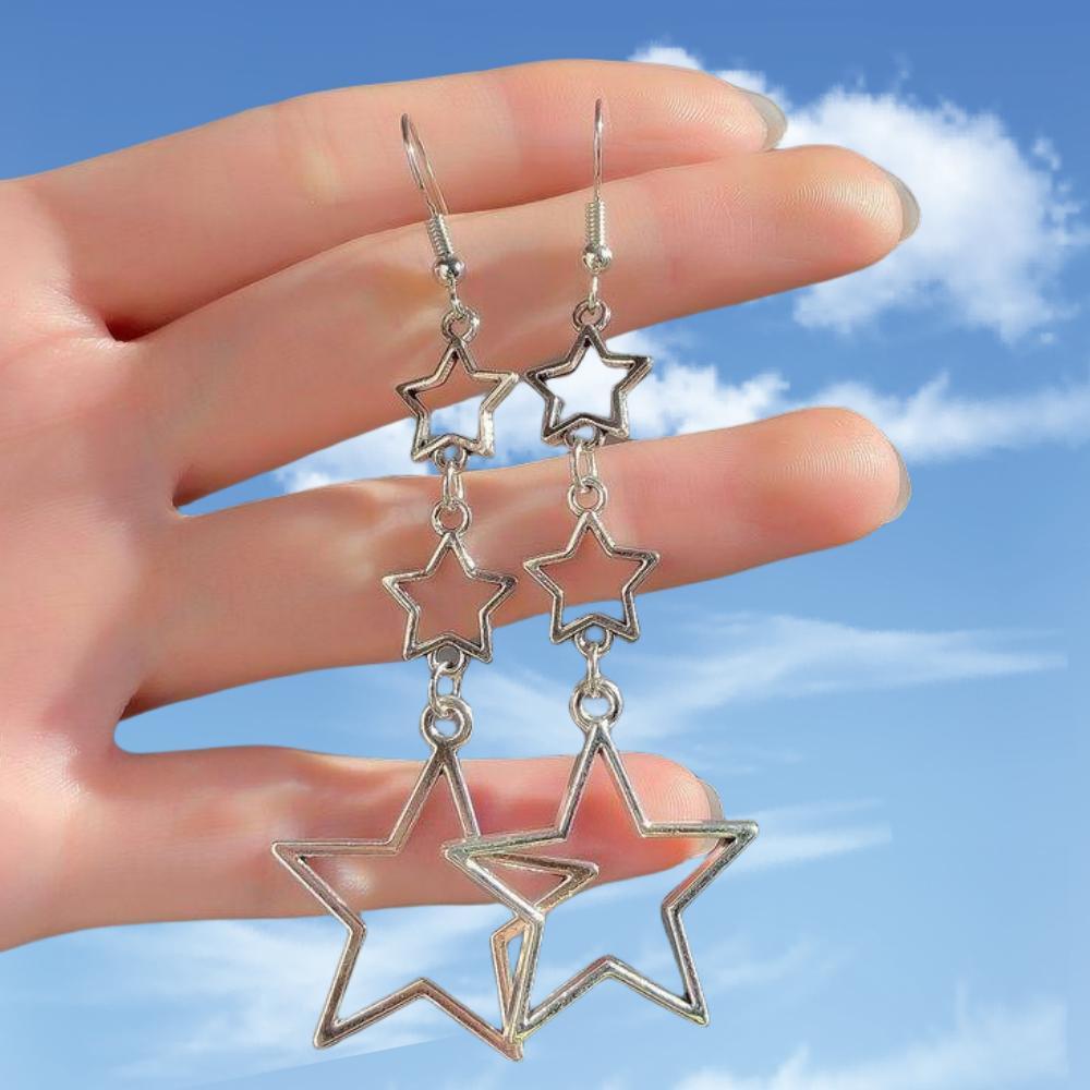 Hot cross-border foreign trade handmade silver five-pointed star pendant earrings factory direct sale