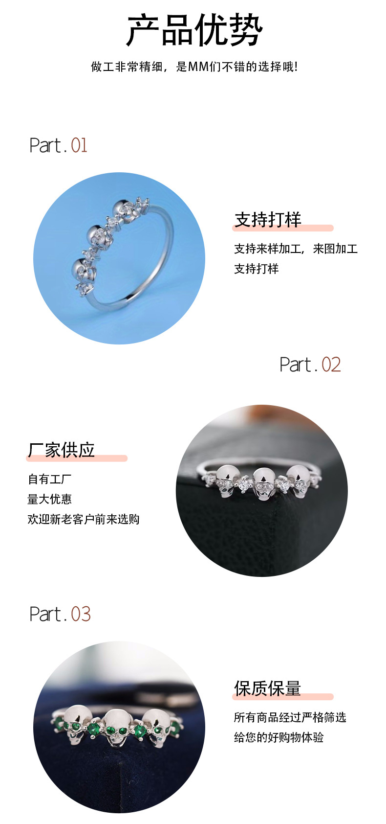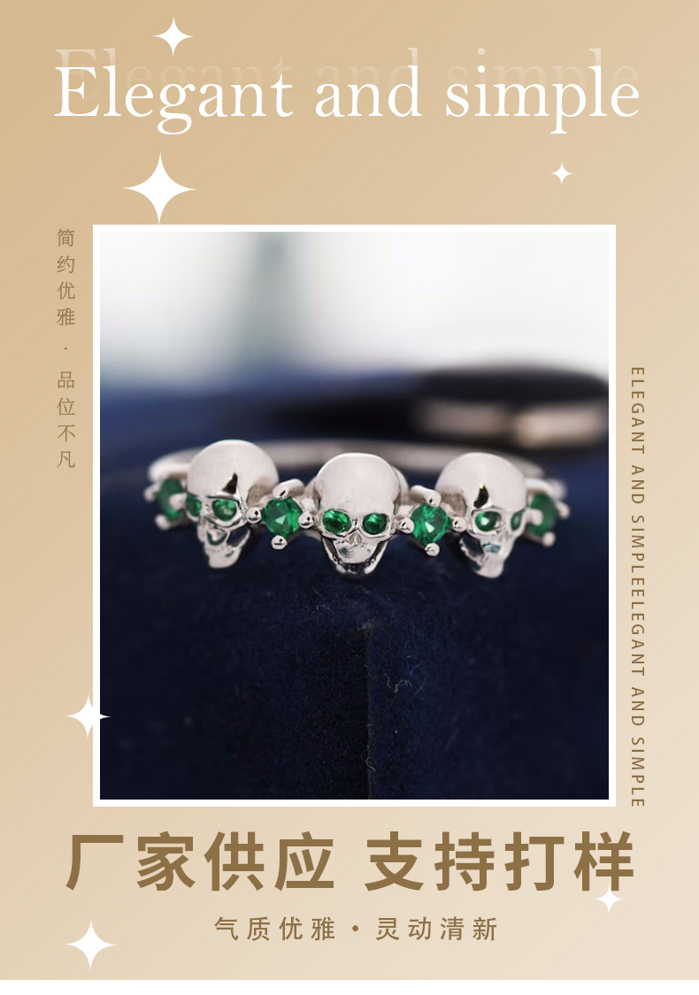 Personalized trendy skull shape finger ring light luxury ring women's niche design jewelry in stock wholesale